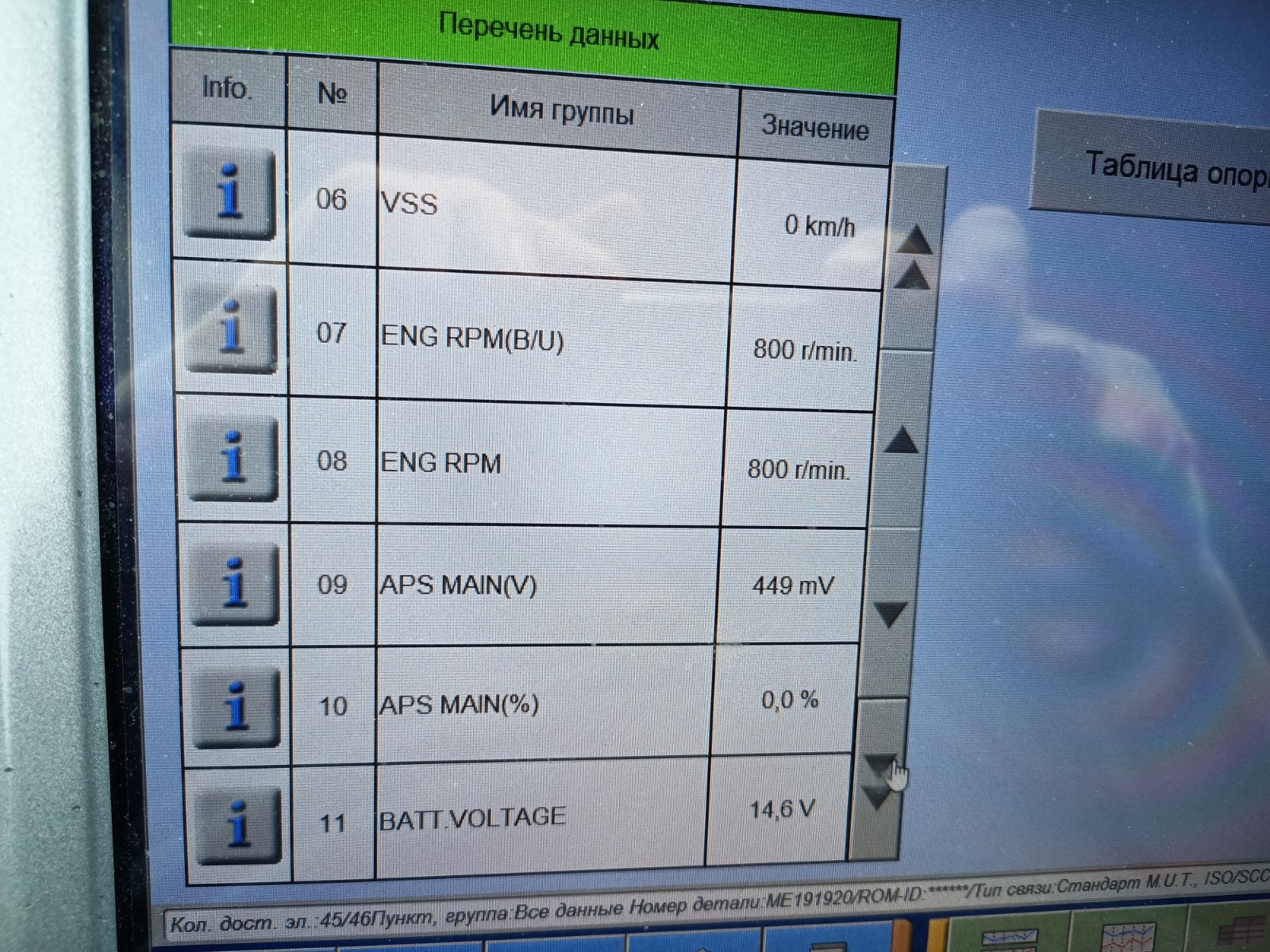 Вот параметры отображаемые MUT-III выше в теме есть от ММС-ридера.