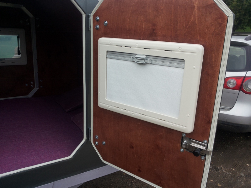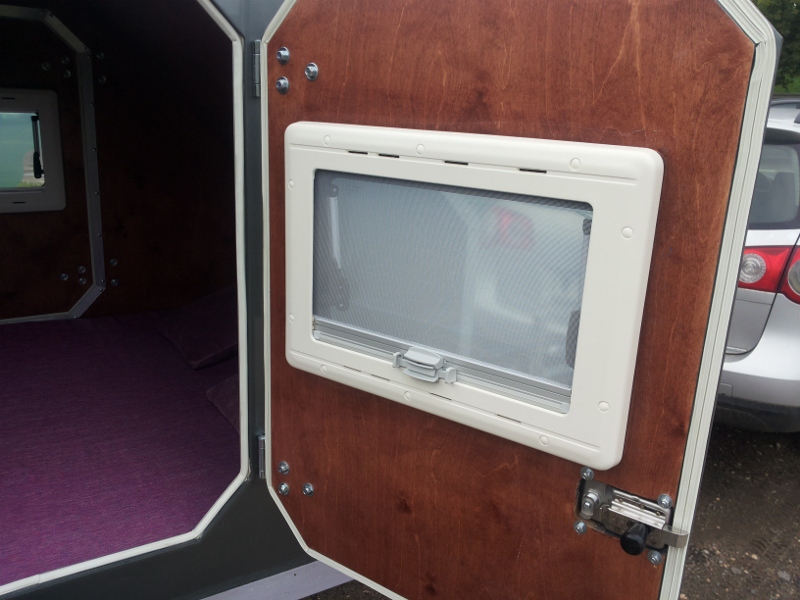 Прицеп укомплектован окнами Dometic со шторками и антимоскитными сетками и специальной фурнитурой (петли, грязезащитные замки).