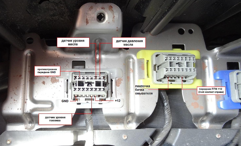 2. В салоне рядом с ЭБУ, цепляя на провода перед ЭБУ