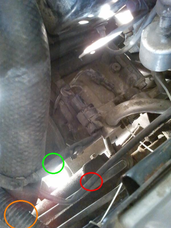 К слову, раз уш пошло. Я, например, через год после замены ГРМ в хорошем вроде как сервисе, обнаружил, что у меня болтается какой-то провод оторванный. И я не понимаю, откуда он. вот красным кружком выделен этот провод. Многожильный, один. Идет из жгута компрессора кондера (зеленым кружком), который идет из жгута от плюса (оранжевым) вот собственно его конец оторваный.