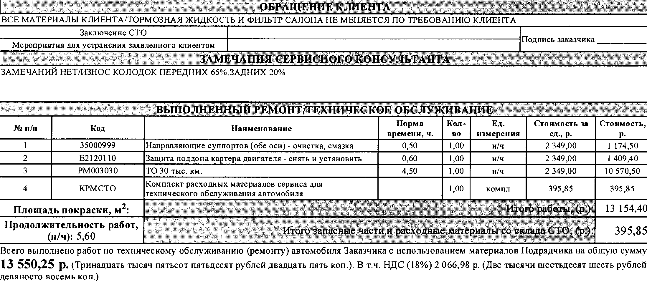 Все з\ч привез свои, за работу отдал 3 370р., плюс провели какие то работы включенные в бесплатное ТО-3000 (на 2400р.-за счет Рольфа).