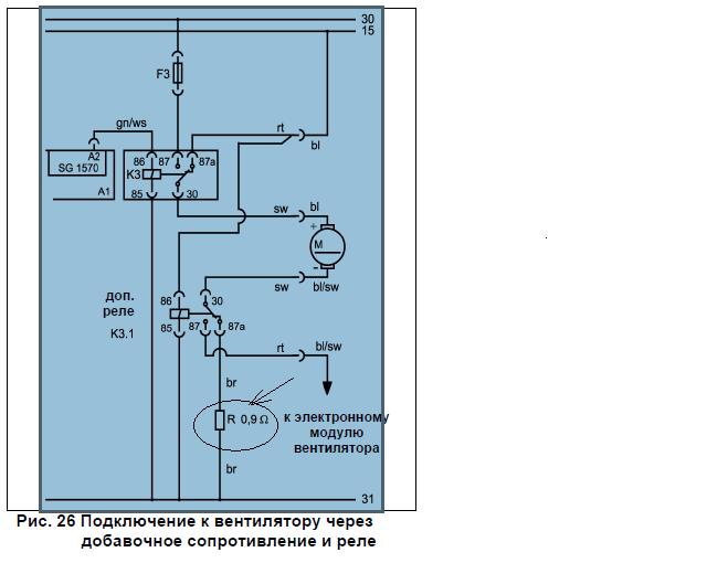 В одной из инструкций по установке вебасто увидел схему подключения печки через дополнительное сопротивление.