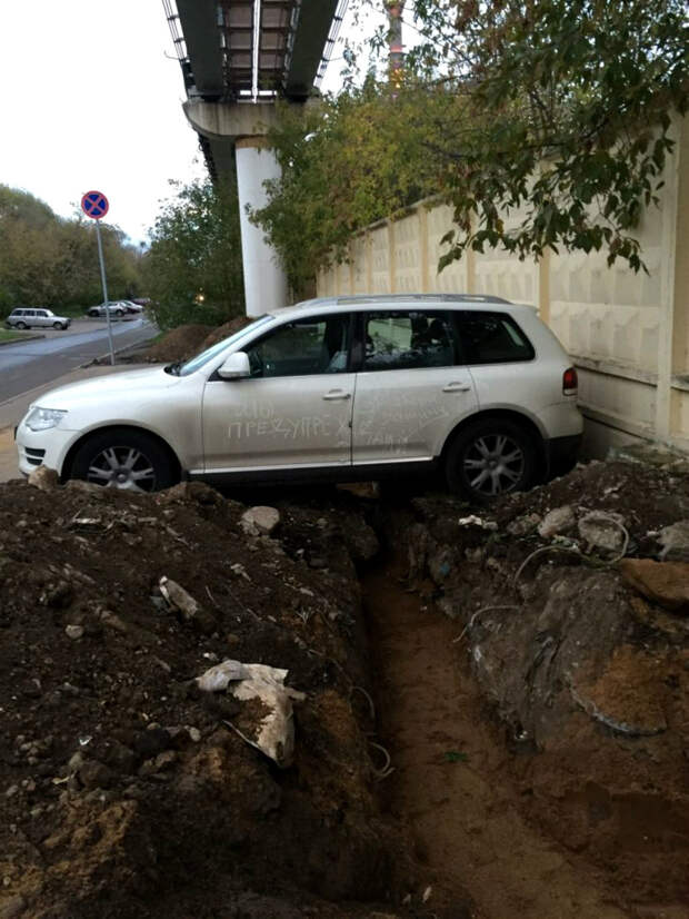 А собственно - в чём тут проблема? Во первых - машину никто не угонит. А во вторых, хозяин машины, может и не заметит. К тому времени как вернётся - глядишь, траншею уже и зароют.
