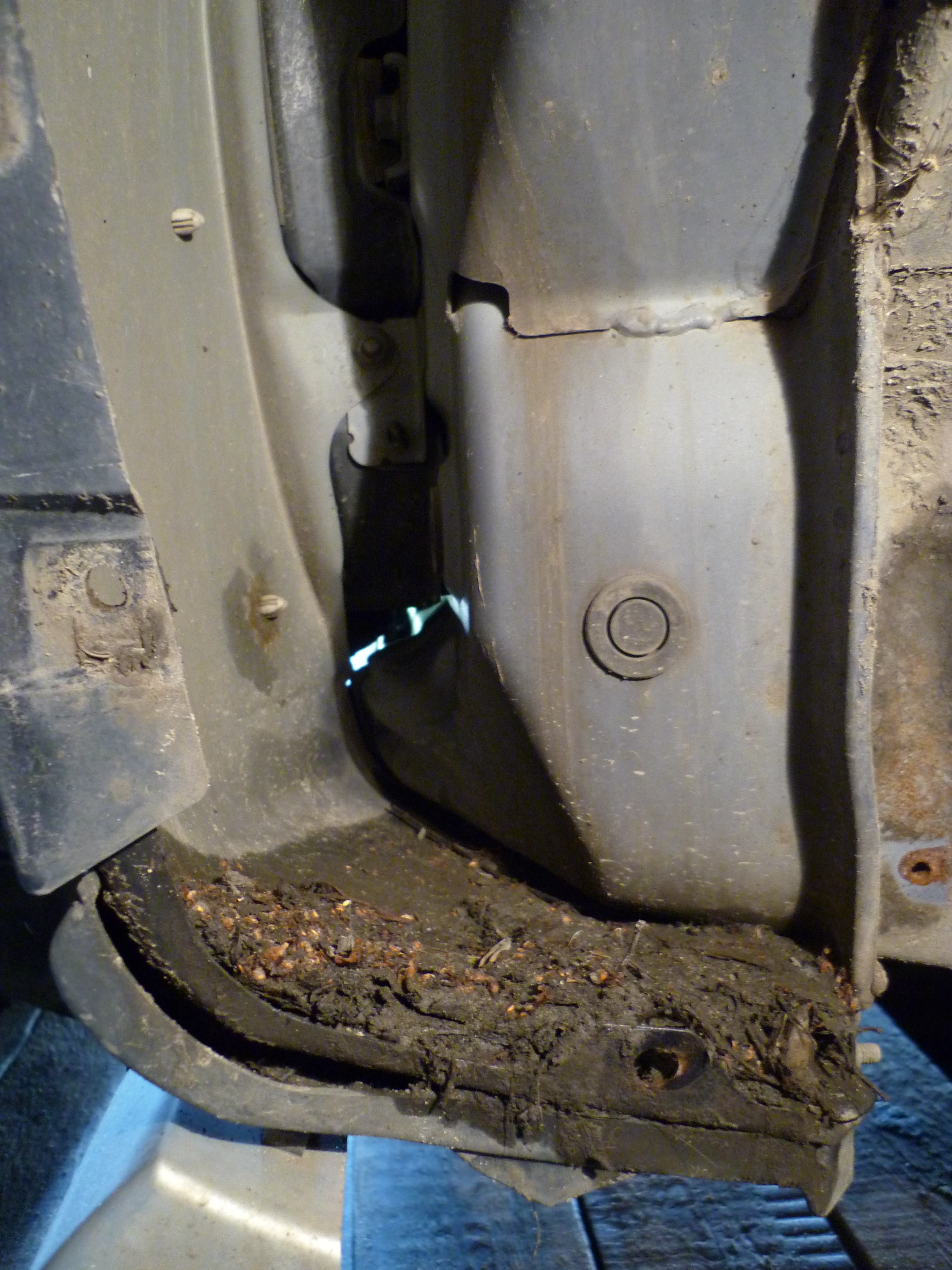 Еще один момент, на который периодически следует обращать внимание. Снимаем передние брызговики. Снимаем штатные пластиковые подкрылки. И чистим там скрытые полости от грязи. А ее там предостаточно.