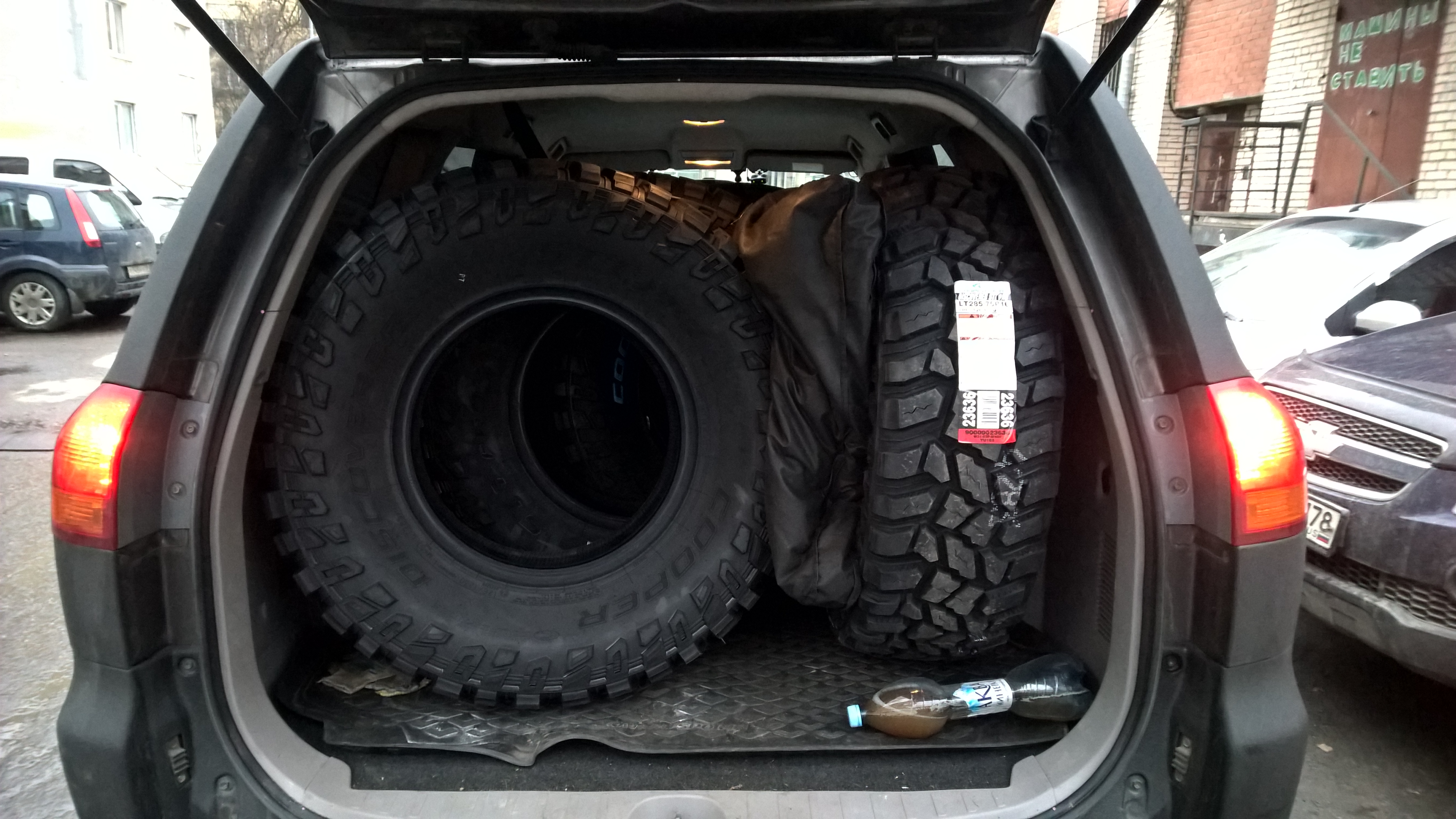Покупал в итоге 4 колеса, пока играл в тетрис в не пустом багажнике, понял что пять колес влезли бы. В салон на диван одно входит и 4 в багажник(мои 4 как раз в багажнике)Newborn787 писал(а):а у нас бфг мт 285/75/16 5 колес в машине можно увезти?