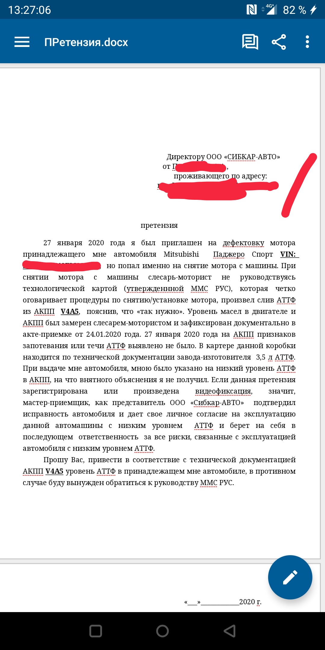 Всем привет! Ну что, машину ещё не получил, но претензию составил заранее. Горе-моторист при снятии мотора зачем то слил АТТФ, сказал, что так надо. В писульке, которую ОД мне пытался подсунуть о стоимости ГСМ, ничего не было сказано о масличке в коробас, походу хотят (ОД) на коробку попасть... Ну что ж мы в этом им поможем.