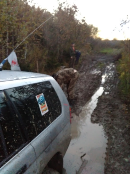 Охота на рябчиков. 8км ехали пять часов, было сложно без лебедя. Потерян передний госномер и крепления бампера