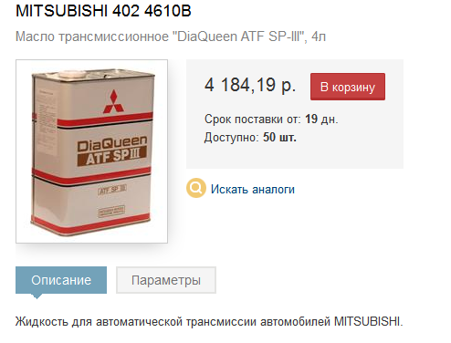 Вот скрин с Эксиста. Я брал 4 банки. В четвертой банке четверть осталось. Diamond ATF SPIII - это американский аналог, дешевле (не знаю почему) выпускается в пластиковых банках. Японский в жестяных.Micklas писал(а):Коллеги, подскажите плз.. ищу на экзисте Diamond ATF SPIII для замены масла для АКПП, а его нет.. можно ли применять аналог и если "да", то какой?