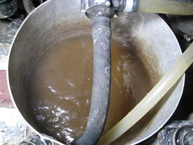 Вернувшись через 2 дня я немного офигел от того что сливалось.Там была такая грязюка что после получаса отстоя в ведре там появился парусантиметровый осадок жравчины,грязи и чего то истчо.