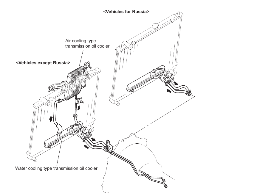 Ну да . Схему на Спорт я чего-то не нашел с мануала . Но описание такое же. Горячая АТФ идет из коробки в штатный радиатор (внутренний) - из него идет в нижний патрубок дополнительного внешнего - из верхнего возвращается в АКПП.