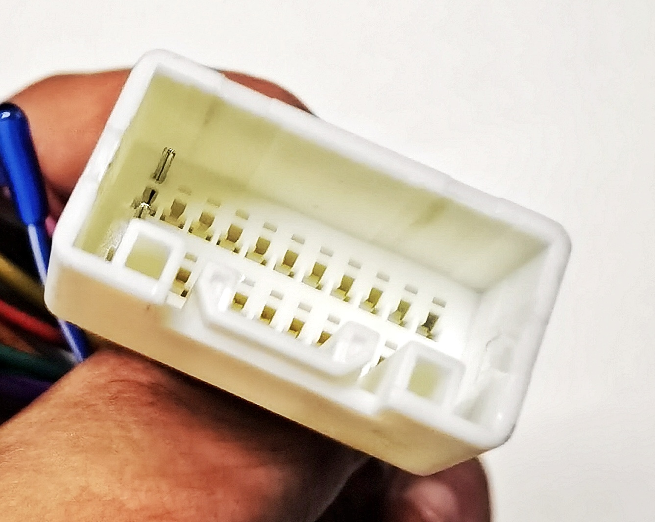 от аута штекер. у нашего 22 pinа вроде (аукс и кнопки руля). Питание на другом штекере.