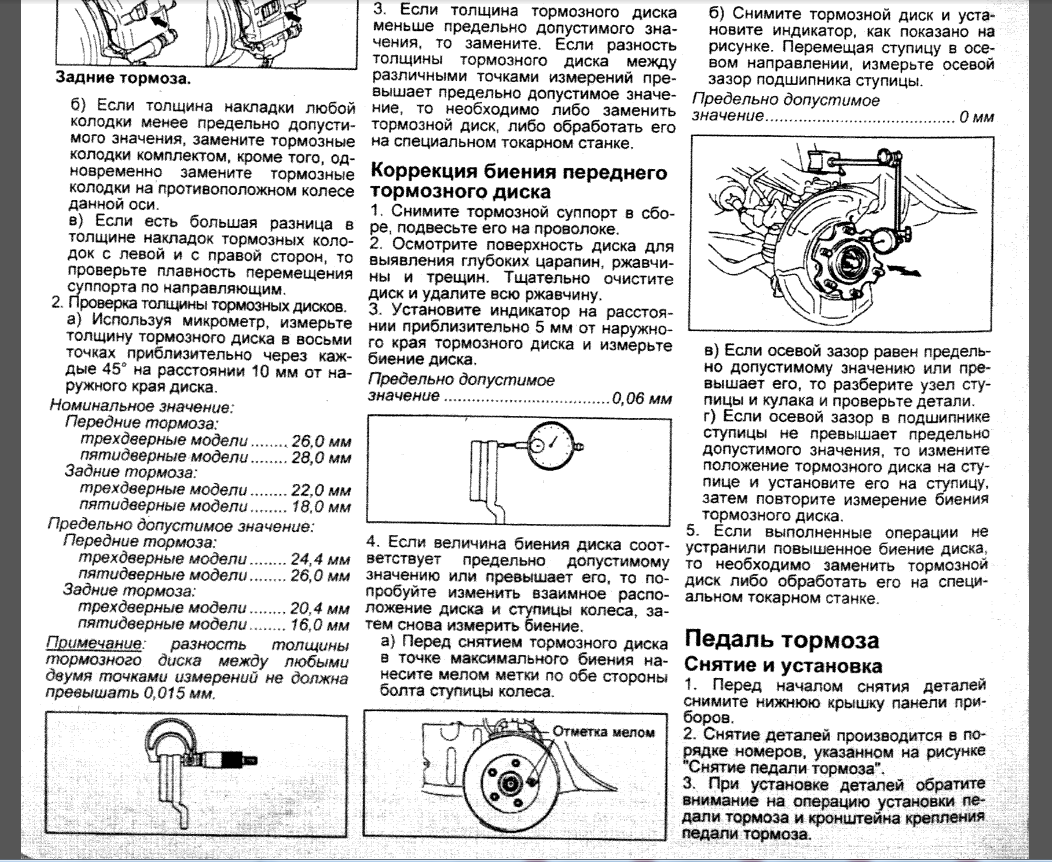 Ты спесь то свою убери, да посмотри на свое же фото, кликнув на увеличение. Спецом указал стрелкой на зазор между губками штангеля и тормозным диском. Ниже прикладываю принт из букваря по обслуживанию, кот. видимо писали японские студенты биологического факультета