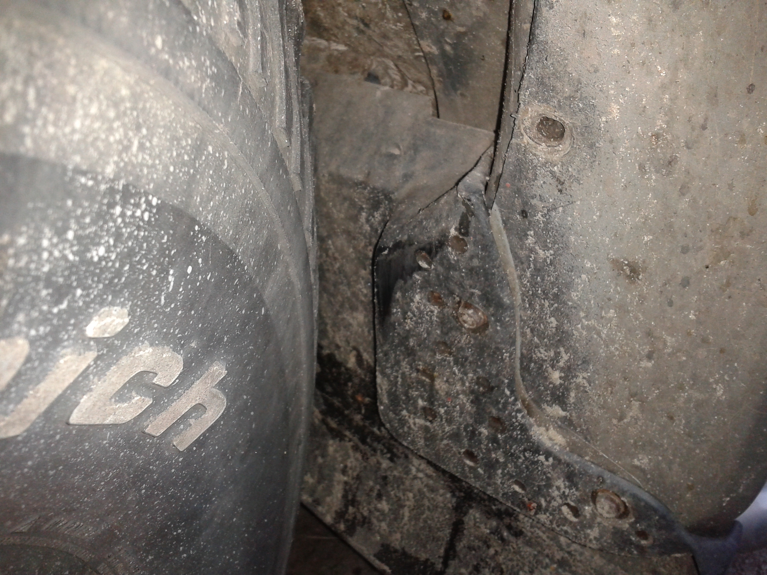 Но проблем как говорится. Все стоковое кроме задних пружин, стоят от Сафаря, обрезано по 1-му витку. Передок приспущен на торсах ниже нормы, летний вариант так сказать. Единственное это еле-еле дотрагивается до брызговика, резать не буду, сами разберутся. А вот собственно и то место где достают: п.с. Колеса очень тяжелые, чествуется, теперь наверно созрел на установку рулевого демпфера.