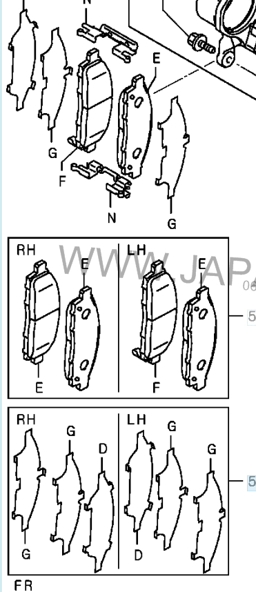 Под номером 4605А195 по ASA бьются направляющие колодок (на рисунках выше, обозначены буквой N), они есть, то что обозначено стрелкой - на машине отсутствуют. Противоскрипные пластины прожили ~ 75000 км - сгнили. Поменял на новые. При замене колодок специально не меняю, если старые живые, но если в комплекте с колодками были бы новые - то поставил бы новые.