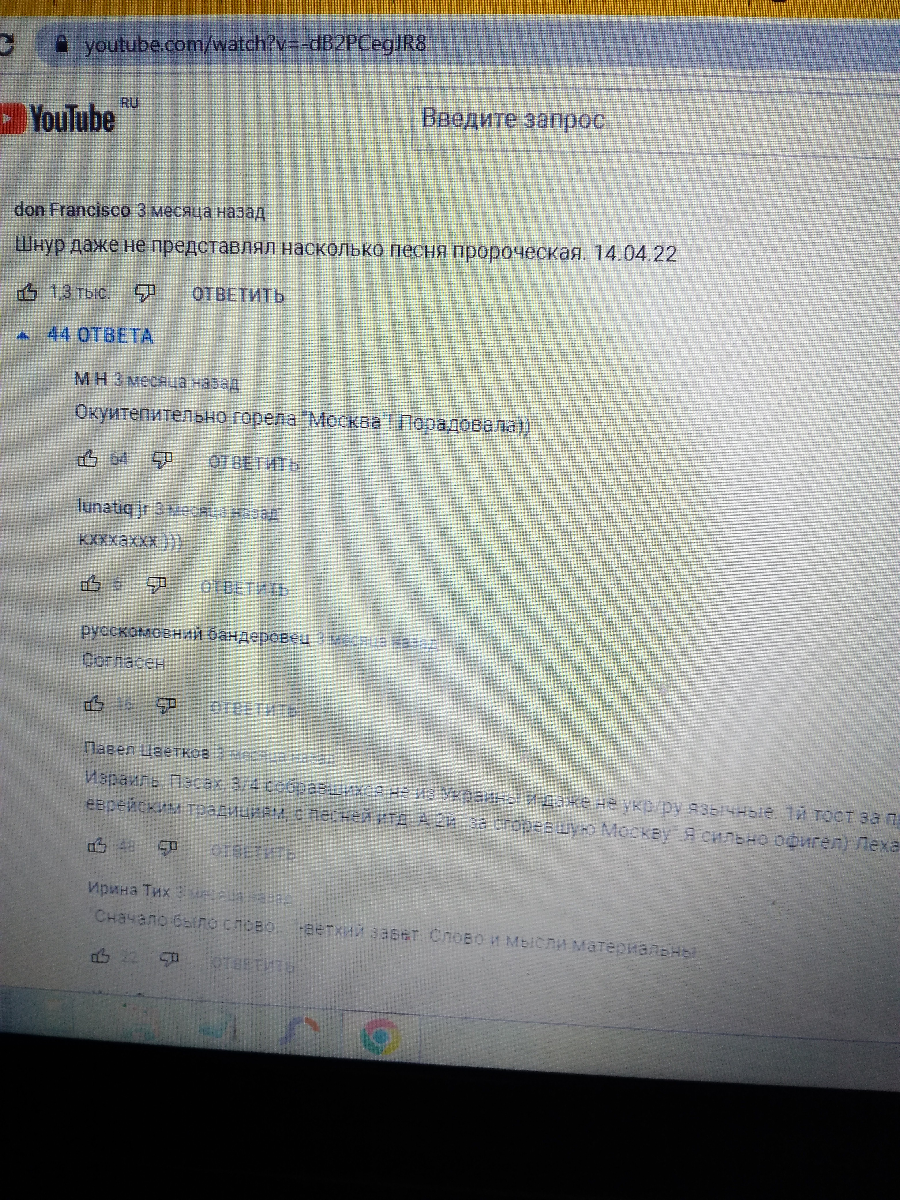 Просто песни слушал за ужином, и случайно на комменты пролистал...