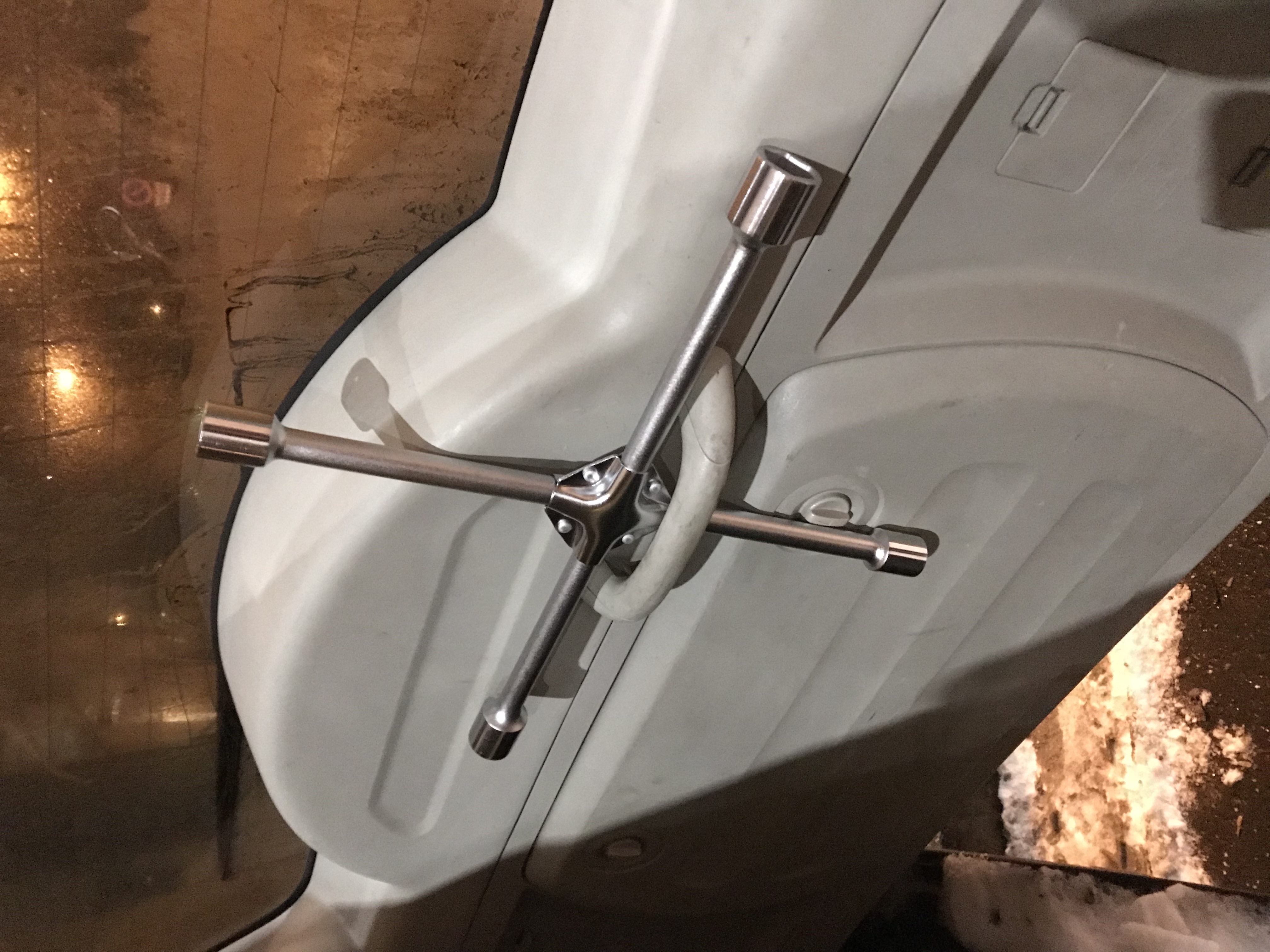 Про баллоник хорошо придумал, а то этот ящик на двери постоянно сам открывается. Огнетушитель держу в бардачке, правда он там занимает 90% места.