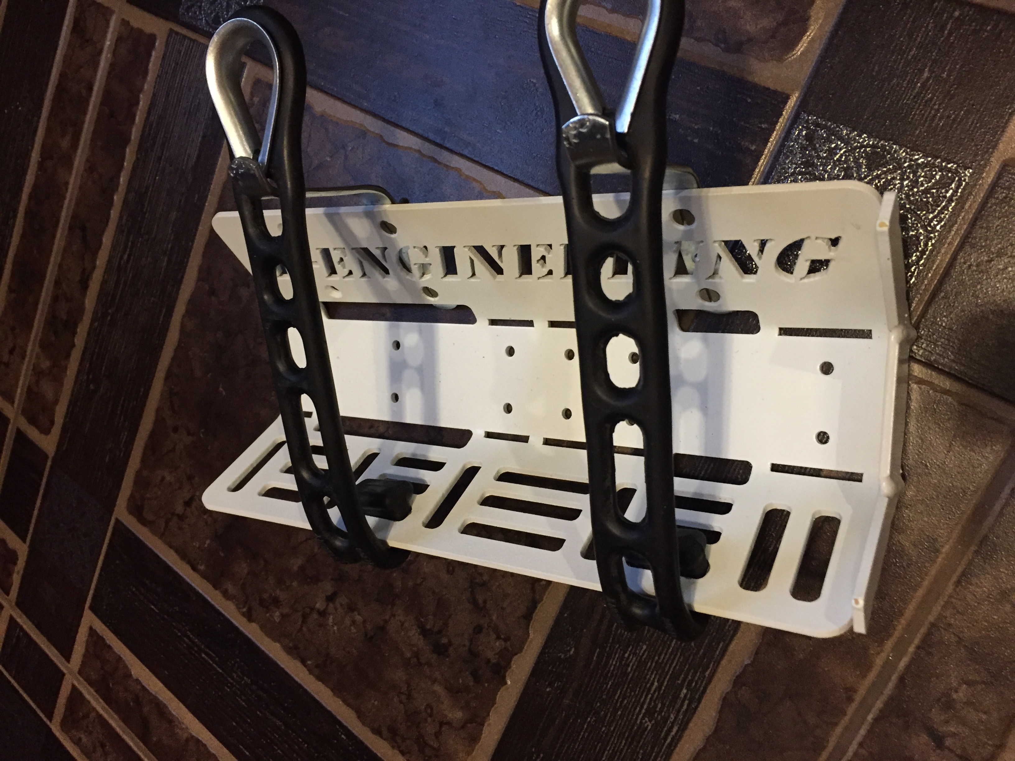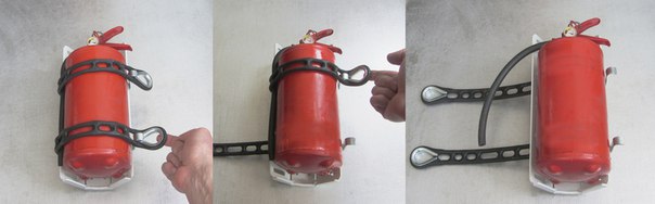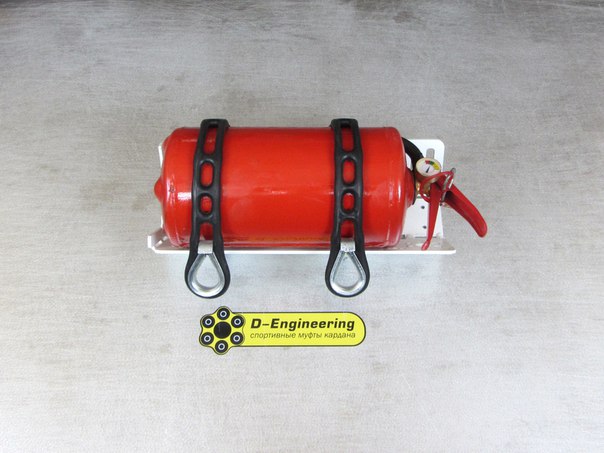 Ещё один из вариантов держателя д/огнетушителя. Понятно, что самодел, но сделан неплохо. Подходит для огнетушителей оп-2, оп-4. Перекрасить основание самостоятельно- не проблема. Продаётся в С.-Пб. Шипят или нет- не знаю. Найти можно по слову "D-Engineering".
