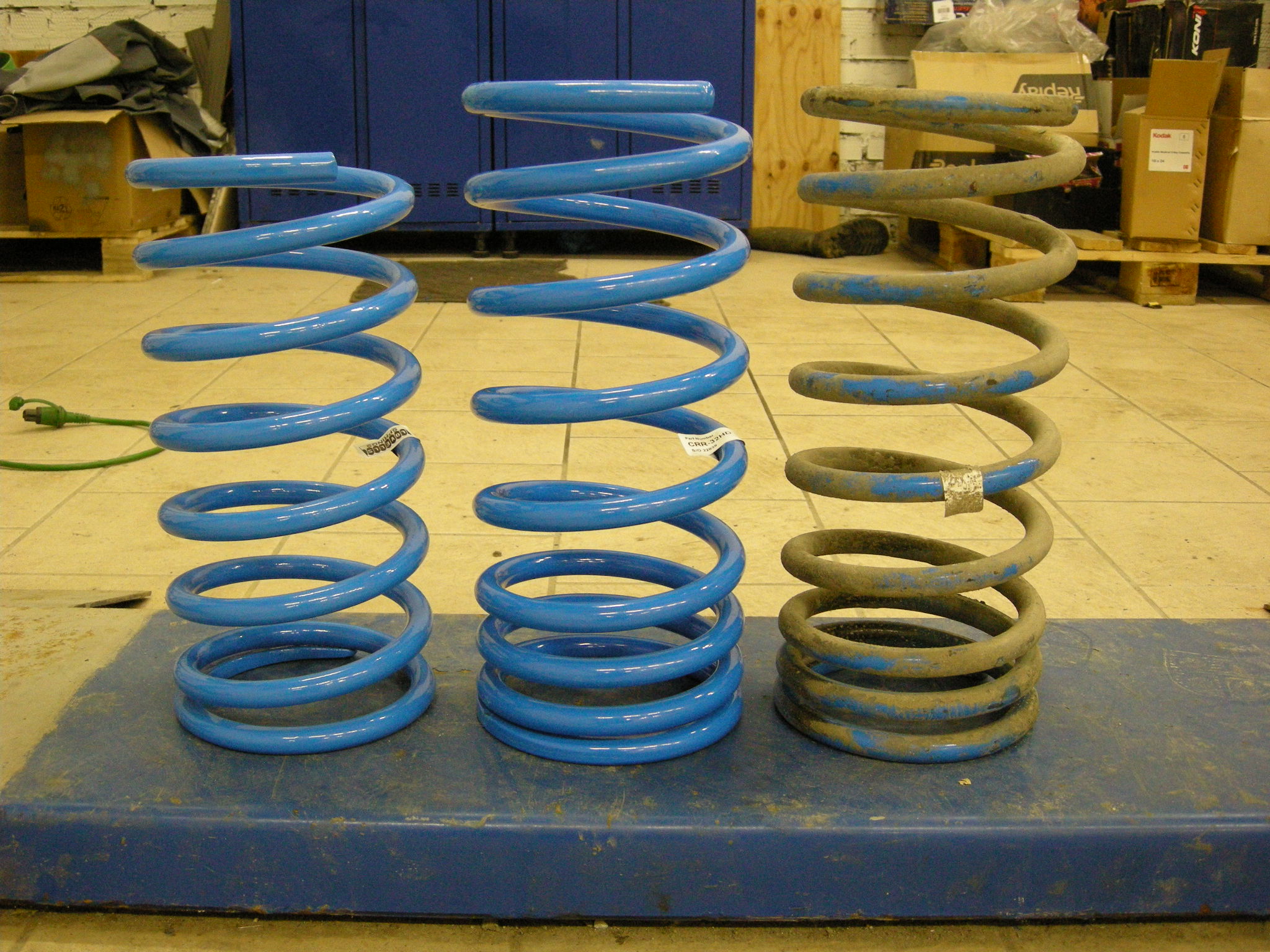 - CRR-32 - длина 420 мм, диаметр прутка 18 (!!!) мм, прогрессивная навивка, первые 3 верхних витка ну очень близко друг к другу, всего девять витков;