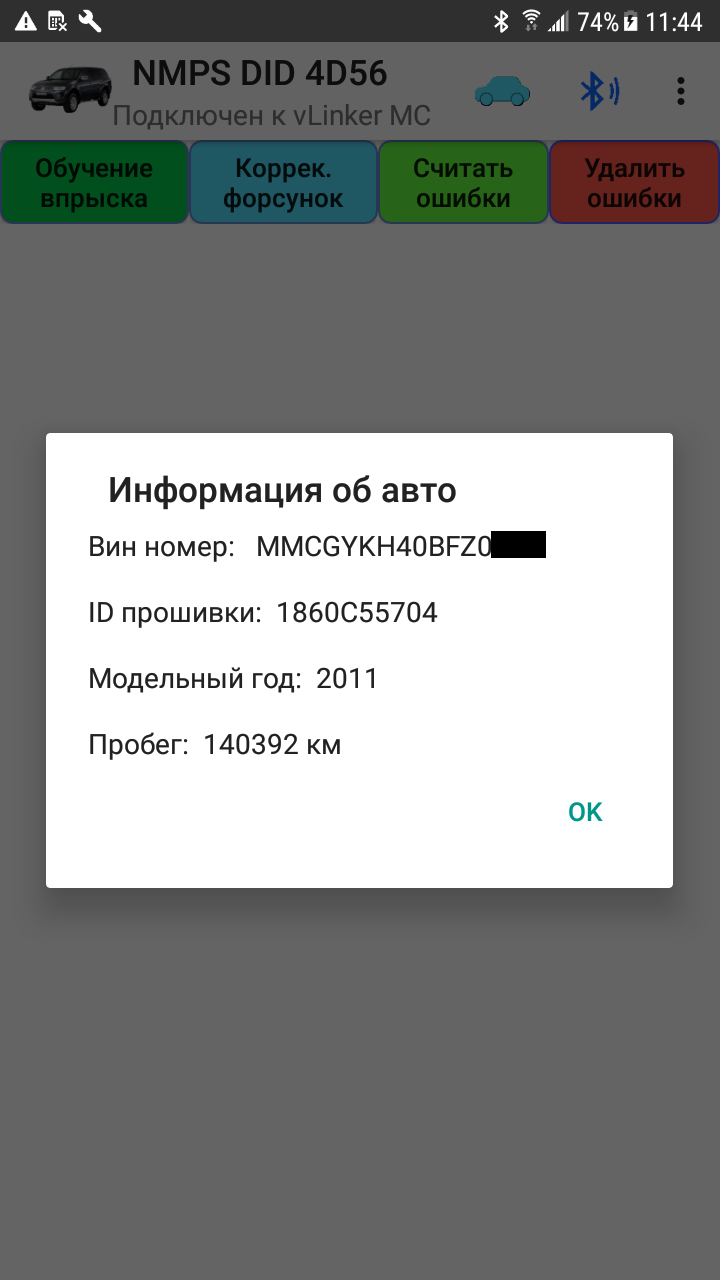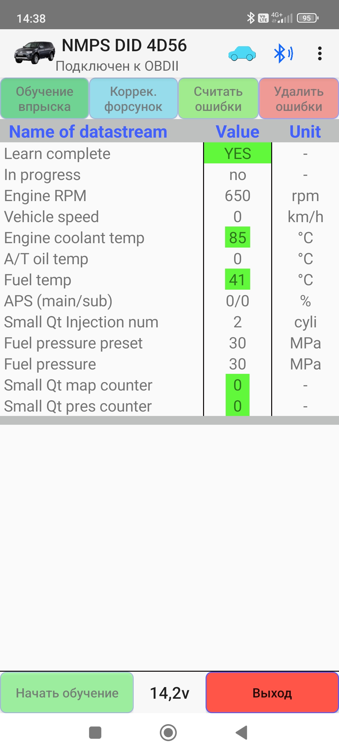 cintakc, Удалил программу и снова закачал с вклученым блютузом, вроде теперь открывается, попробывал обучить форсунки не знаю получилось или нет, вроде да