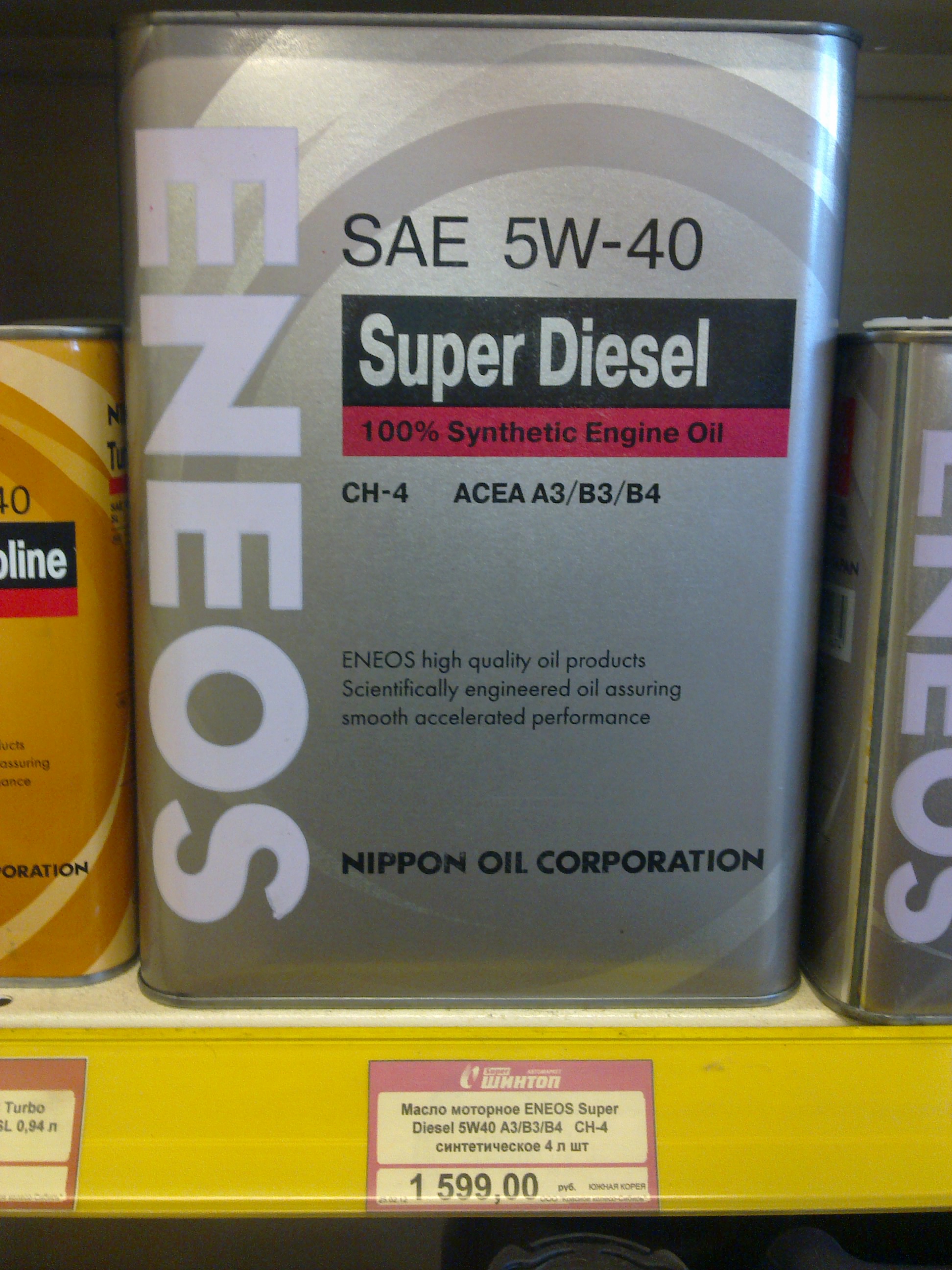 А в чём счастье то? Покупать за 2095руб 4л минерального масла 10w30? Или знакомое слово Pajero, написаное на банке так сильно душу греет?SKS писал(а):Вот я тоже на ENEOS SUPER DIESEL 100% SYNTHETIС API CH-4 SAE 5W-40 посмотрел.DenisR писал(а):я лью ENEOS SUPER DIESEL 100% SYNTHETIС API CH-4 SAE 5W-40, в l200new и в спорт, щелочное число у него одно из самых высоких 13.1, у l200 пробег 50000 у спорта 40000, пока нареканий нет.SKS писал(а):А что известно о маслах ENEOS (Япония)?
