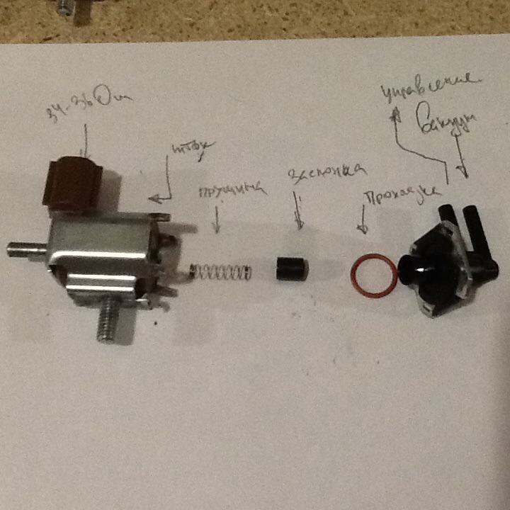 в той части клапана, где находятся сами штуцера(на фото "управление/вакуум"), там, во внутреннем канале есть направляющие для клапана (на фото -"заслонка").