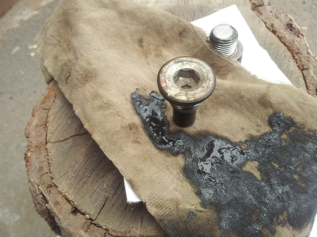 На сливной пробке металлическая пыль, немного осадка.