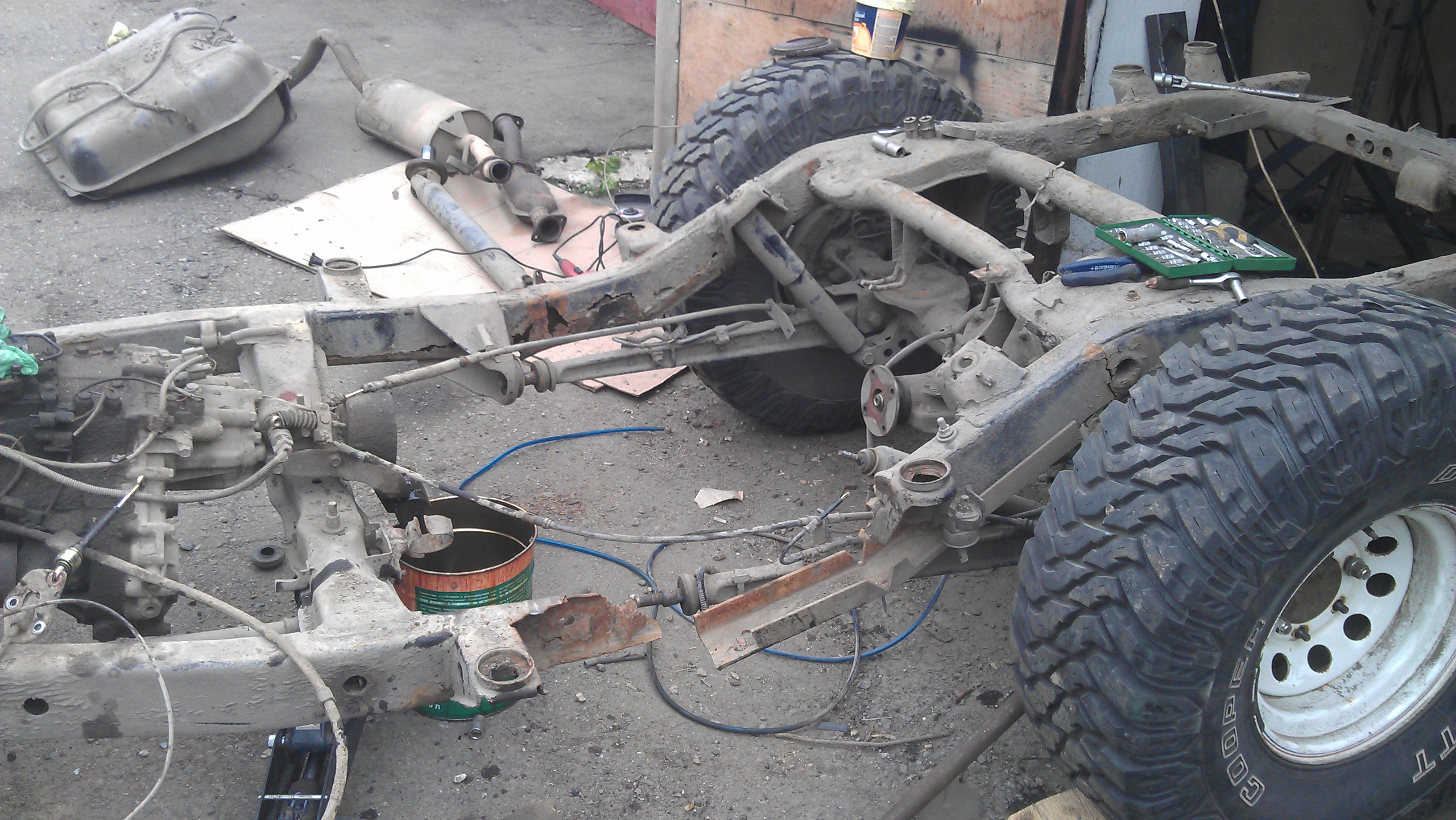 неа....уманался вчера пипец...думаю пару дней в гараж точно не пойду ))) осталось протянуть тормозные трубки,сапуны вывести,бензопровод, рулевку переделать и можно опускать кузов.....