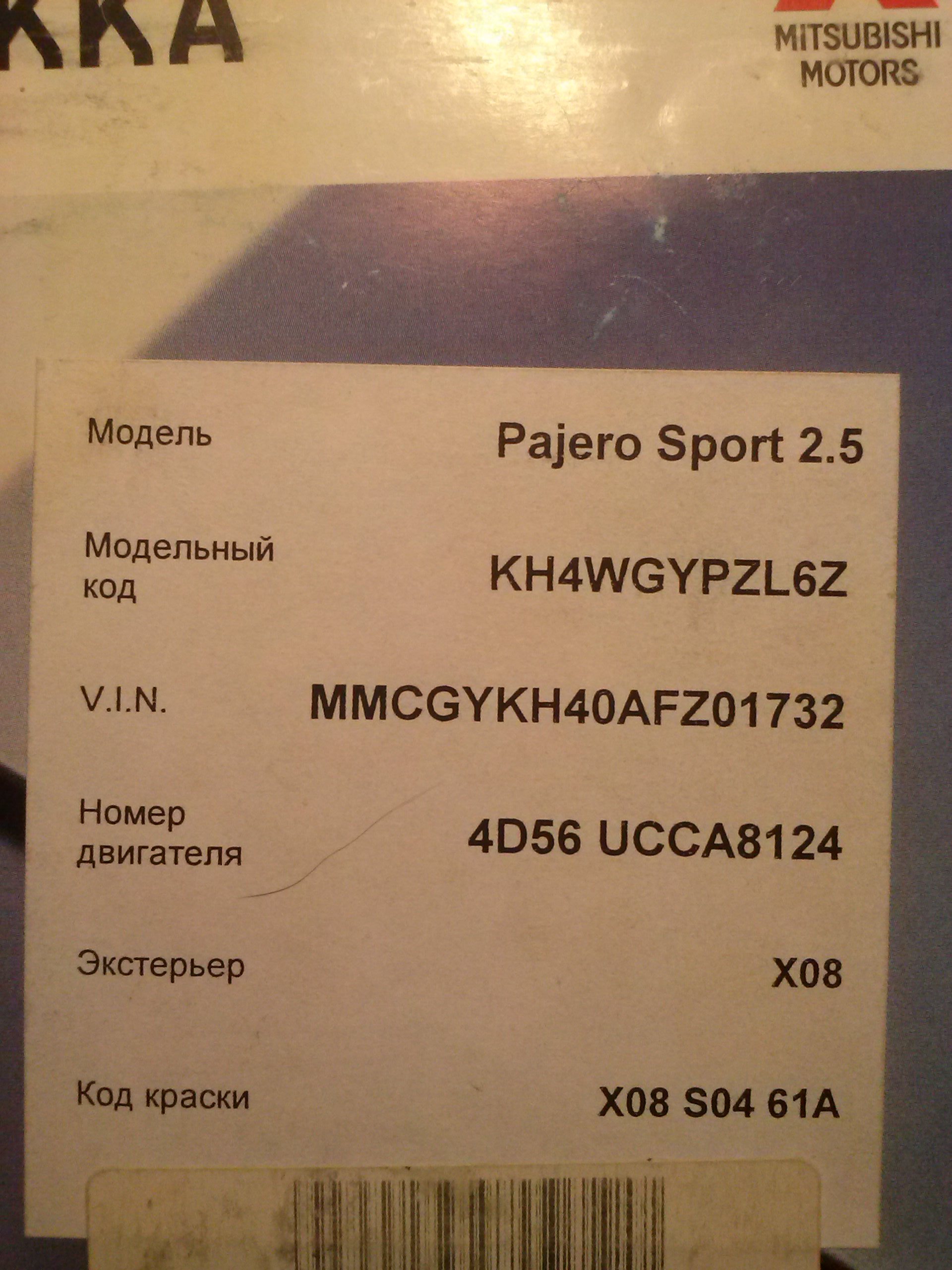 А у меня например на сервисной книжке наклейка и там все написано. Посмотрите на своих, может просто не обратили внимания.ISerg писал(а):По моему ВИНу - A02A что соответствует мокрому асфальтуblack910 писал(а):Alex ZZ, есть же тема http://pajero4x4.ru/bbs/phpBB2/viewtopi ... 81&t=61827. VIN НПС 3.2 в данной редакции ASA точно должен быть. У меня в поле Exterior значение X08A.