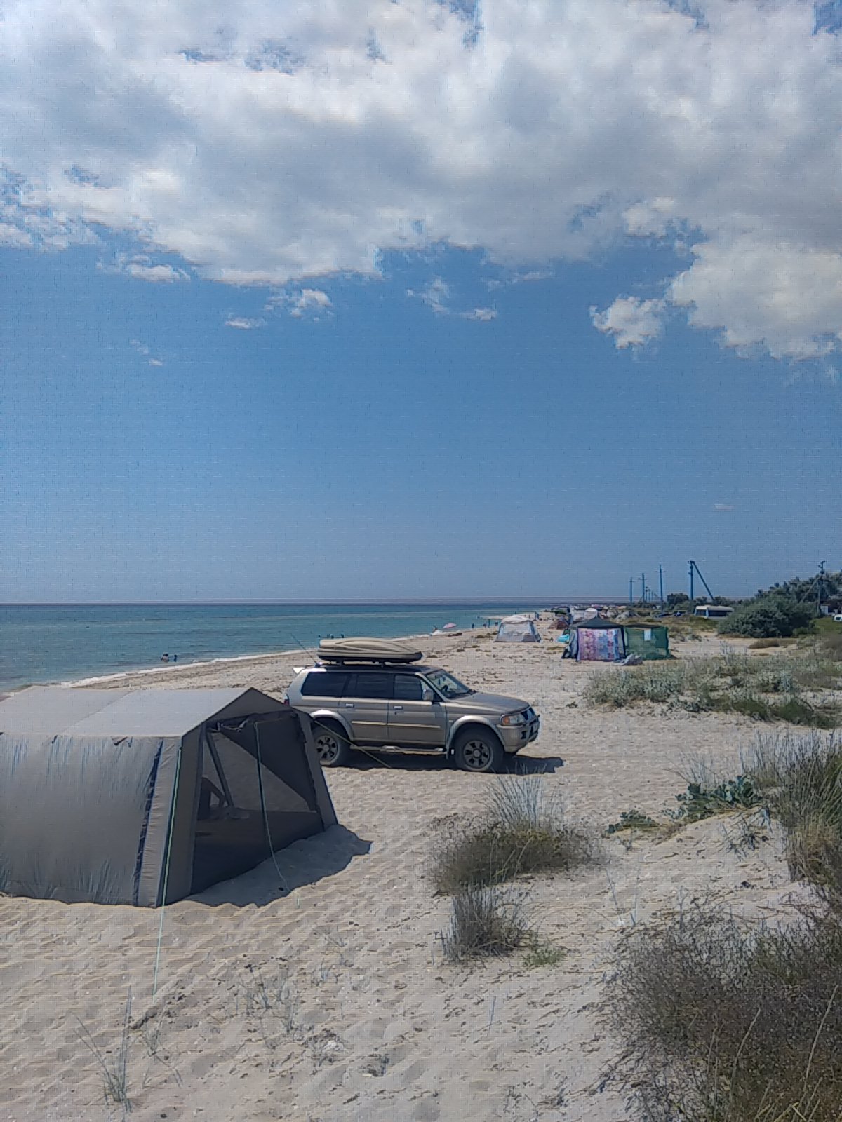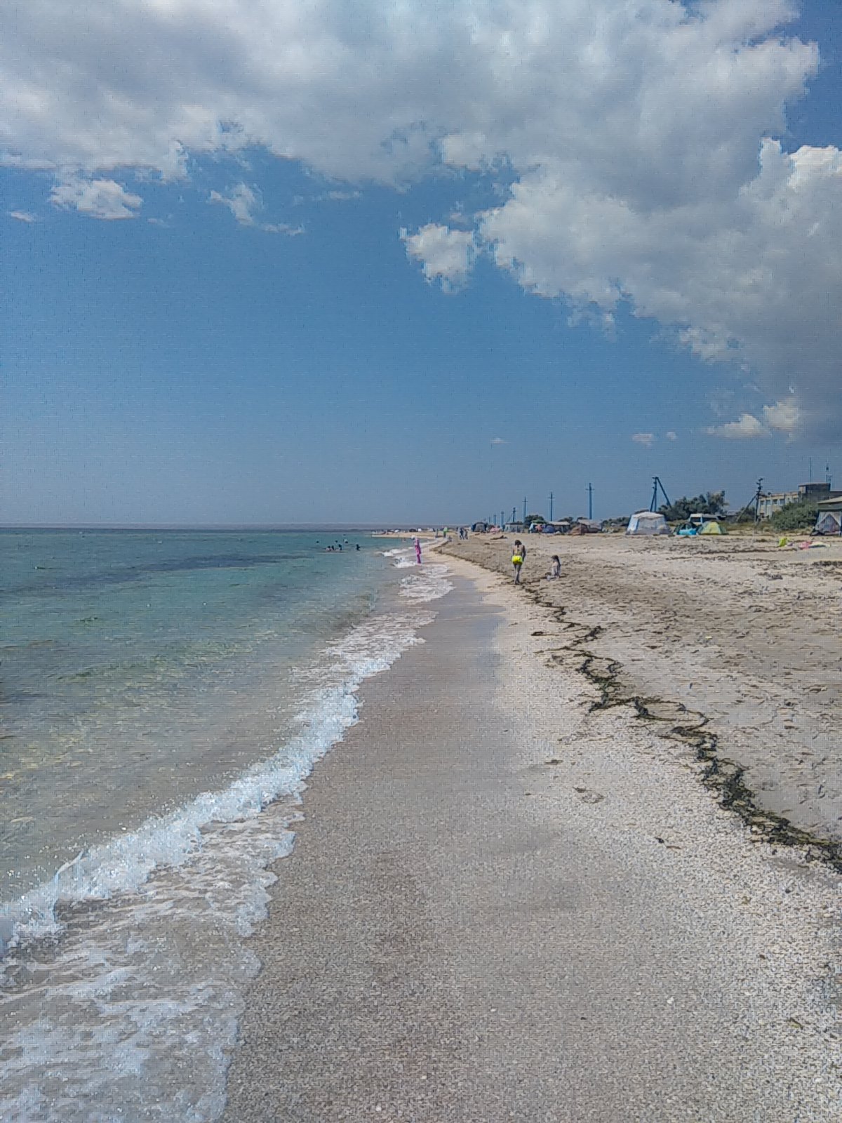 Мы сейчас в Евпатории, только приехали из Штормового, народу по берегу немеряно, к 14 часам часть народа уехала, пекло началось, НО и постоянно там живущих очень много, особенно в травяной полосе,метрах в 70-ми от берега. Вода прохладна, медуз немеряно, но все равно кайф!!!! 6 лет не был!