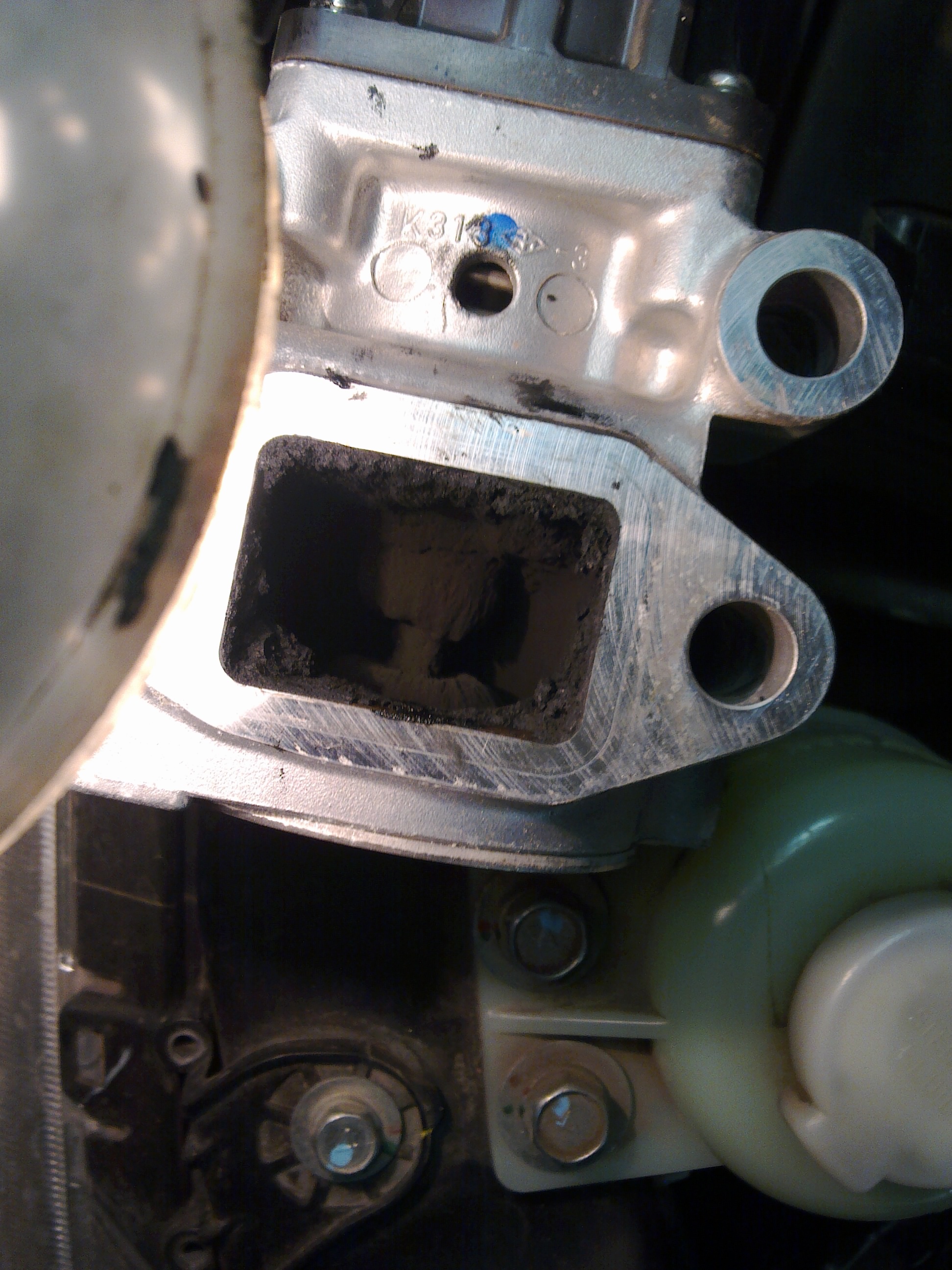 ЕГР заклинило в закрытом состоянии, т.к. шток покрыт монолитным слоем нагара.