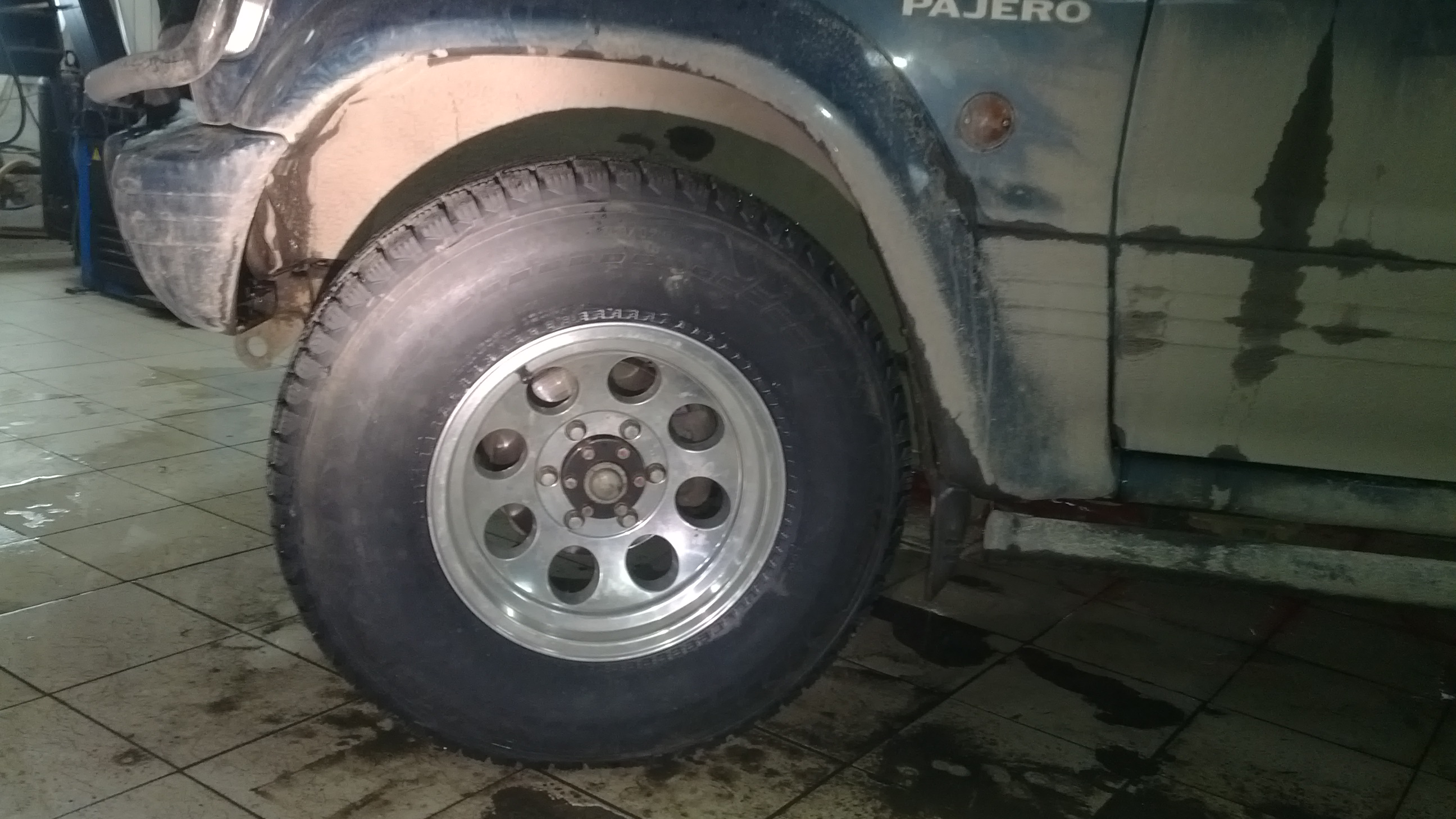 В результате примерки получилось, что при повернутых колесах минимальное расстояние от резины до брызговика остается около 1 см,