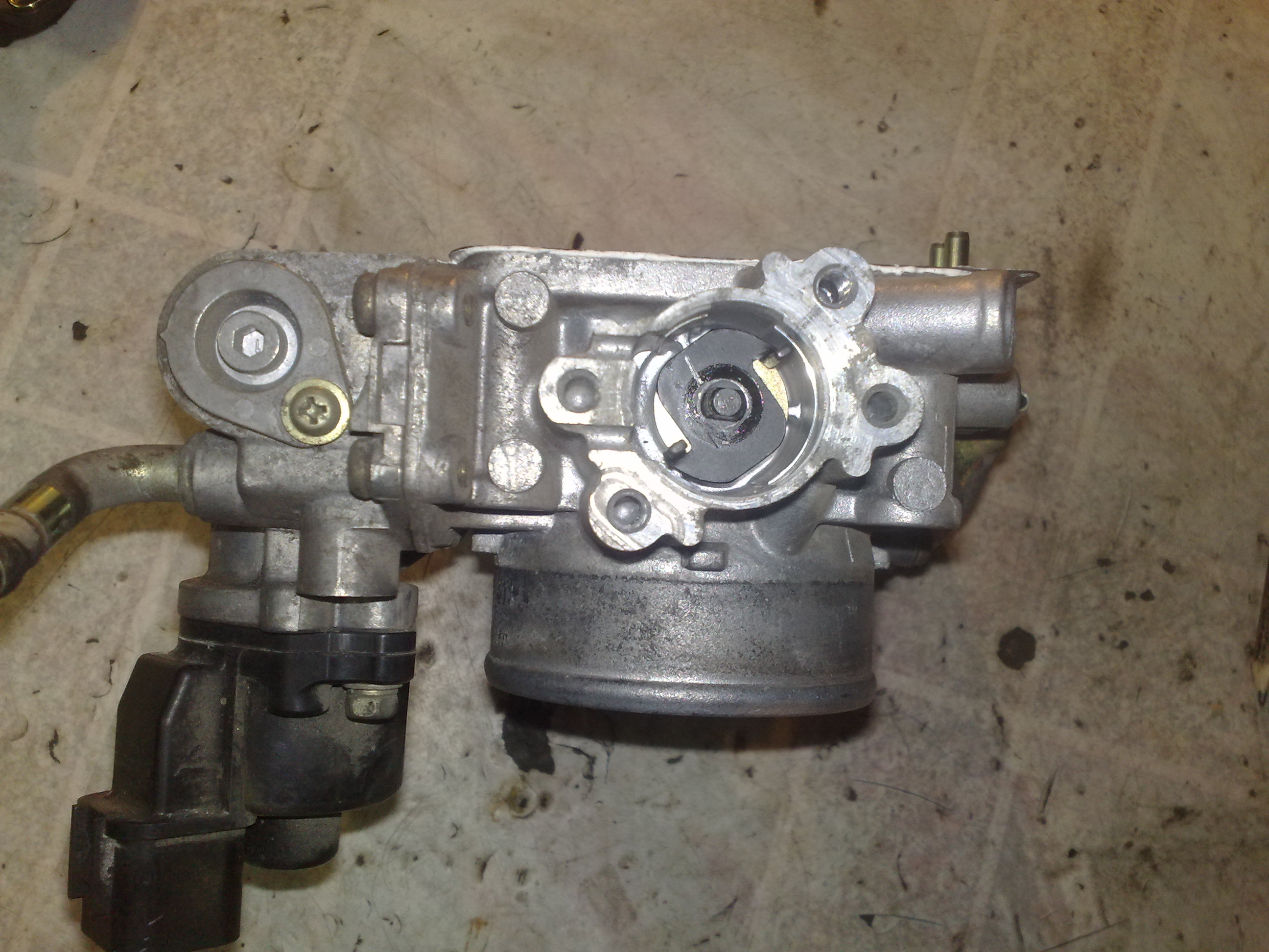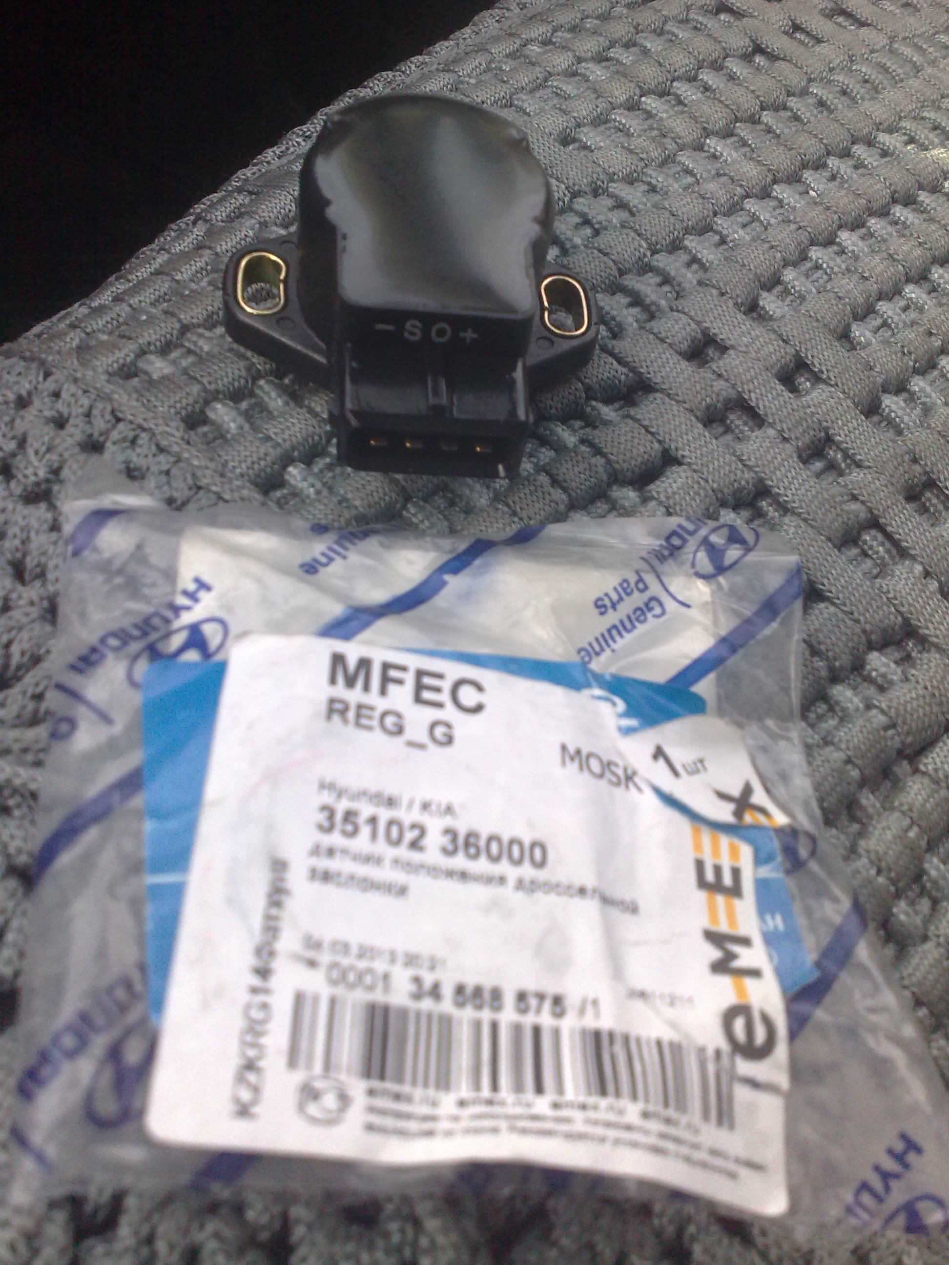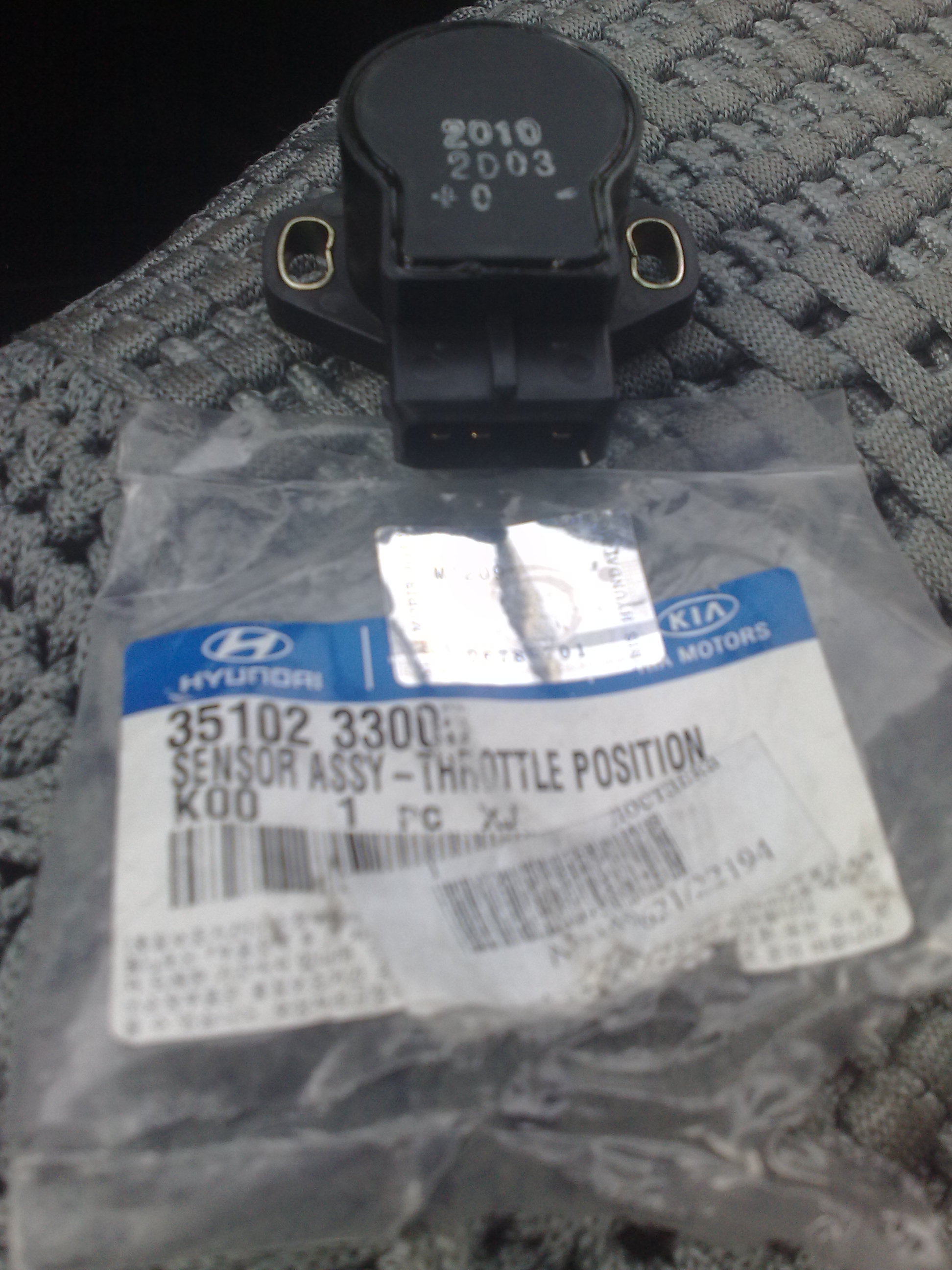 Заказал в другом месте правильный датчик 35102-36000, привезли-забрал, он нужного вращения, 4-х контактный, вот только большего размера, но ничего переделать можно, для этого надо снять узел дроссельной заслонки, предварительно слив литра 2-3 охлаждающей жидкости. Нужно сделать переходную пластинку между ДПДЗ и местом куда он прикручивается. Я дополнительно нарезал 2 внутренних резьбы на М5, там есть дырки. Сверлятся 4 дырочки в пластинке на 5, под патай , ну по месту это хорошо видно вертя в руке дроссельную заслонку. На самом ДПДЗ сточил буртик-ступеньку. По мультиметру установил ДПДЗ, со щупом 1.4мм, у меня круиз контроль. Получилось что фишка ДПДЗ смотрит строго вниз, против старого положения вверх в правую сторону. Поэтому немного не хватило проводки ДПДЗ, пришлось заизолировать по другому.