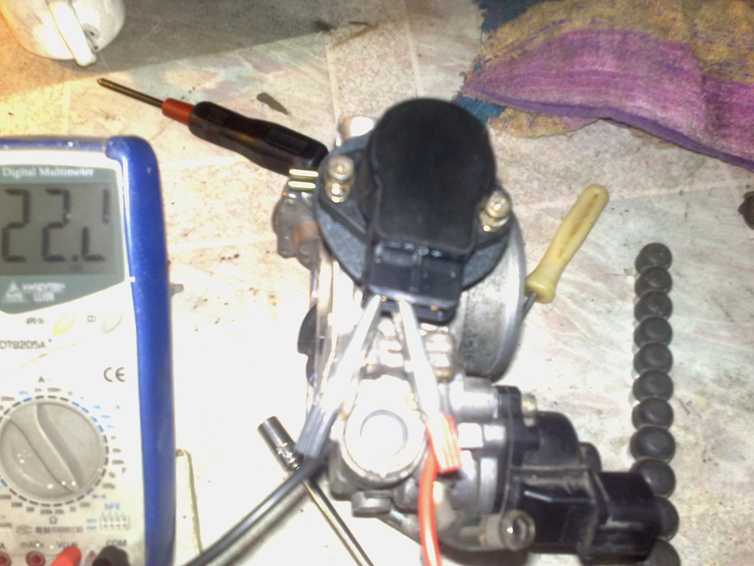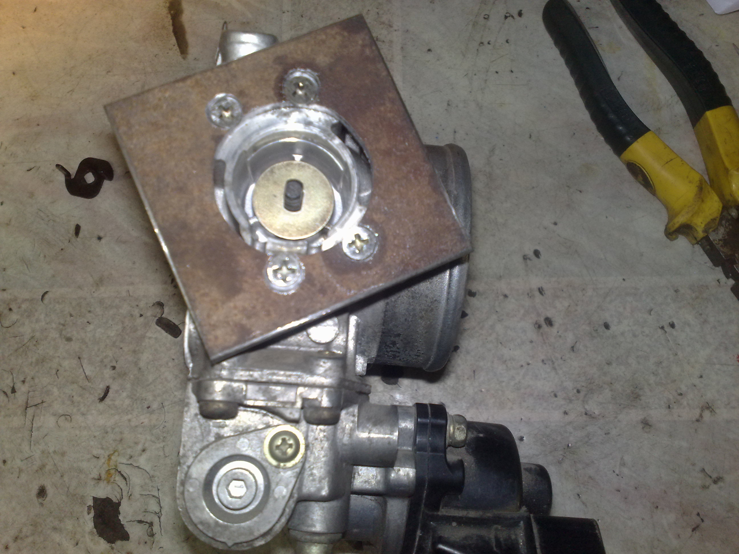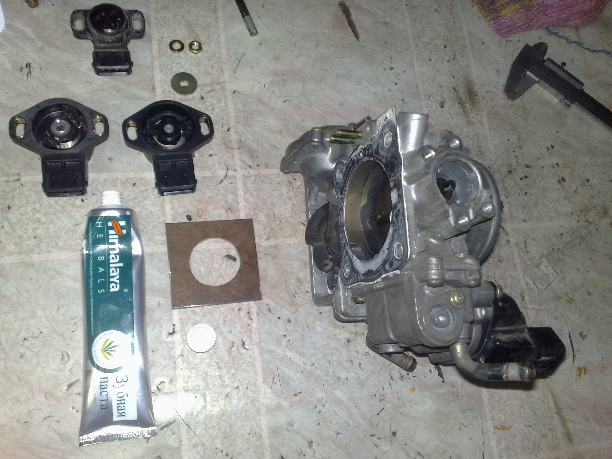 Заказал в другом месте правильный датчик 35102-36000, привезли-забрал, он нужного вращения, 4-х контактный, вот только большего размера, но ничего переделать можно, для этого надо снять узел дроссельной заслонки, предварительно слив литра 2-3 охлаждающей жидкости. Нужно сделать переходную пластинку между ДПДЗ и местом куда он прикручивается. Я дополнительно нарезал 2 внутренних резьбы на М5, там есть дырки. Сверлятся 4 дырочки в пластинке на 5, под патай , ну по месту это хорошо видно вертя в руке дроссельную заслонку. На самом ДПДЗ сточил буртик-ступеньку. По мультиметру установил ДПДЗ, со щупом 1.4мм, у меня круиз контроль. Получилось что фишка ДПДЗ смотрит строго вниз, против старого положения вверх в правую сторону. Поэтому немного не хватило проводки ДПДЗ, пришлось заизолировать по другому.