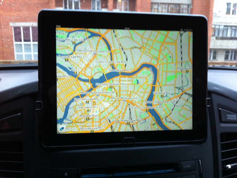 1. Выступающая вверх часть iPad-а не перекрывает вид и проходит, примерно, по передней кромке капота.
