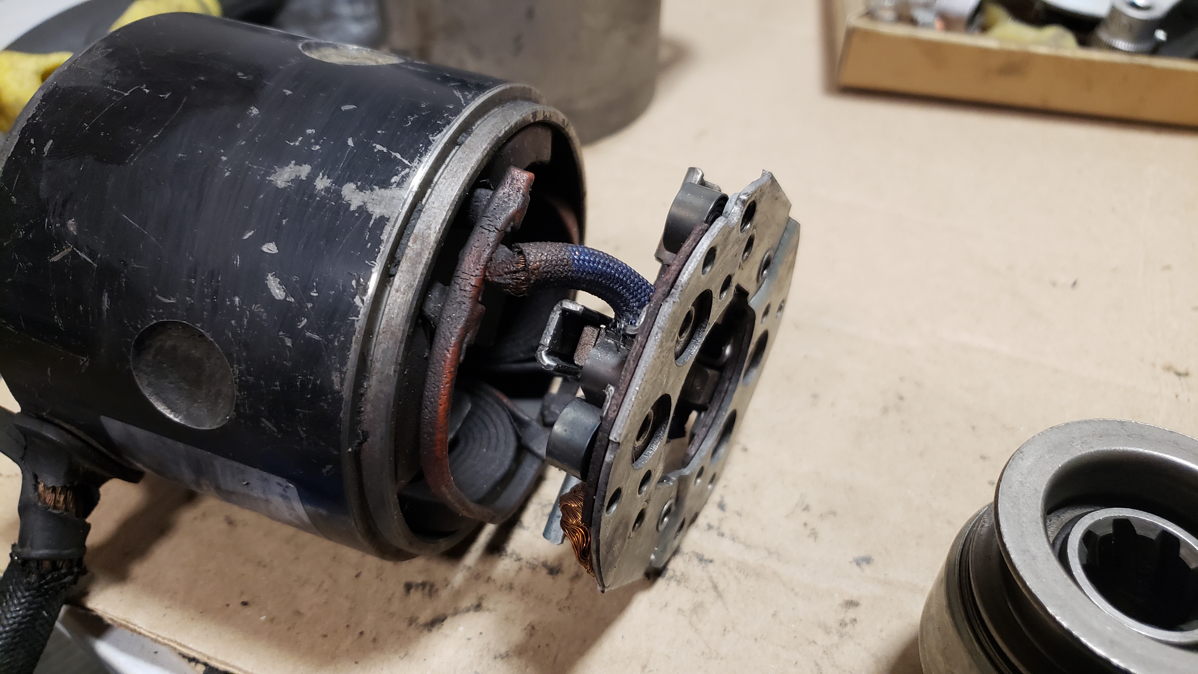 Разбираю дальше. На крышке стартера от щеток уж очень большая шуба, щетки подьедены, но вроде длины всех хватает для хорошего прижима.