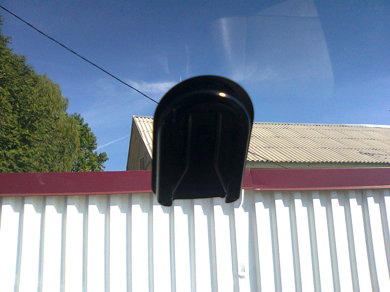 Там пятак - черная пластмасска прямоугольник с двумя закругленными уголками...Внутри две метал. проволочки для зажима зеркала зад вида (ЗЗВ).