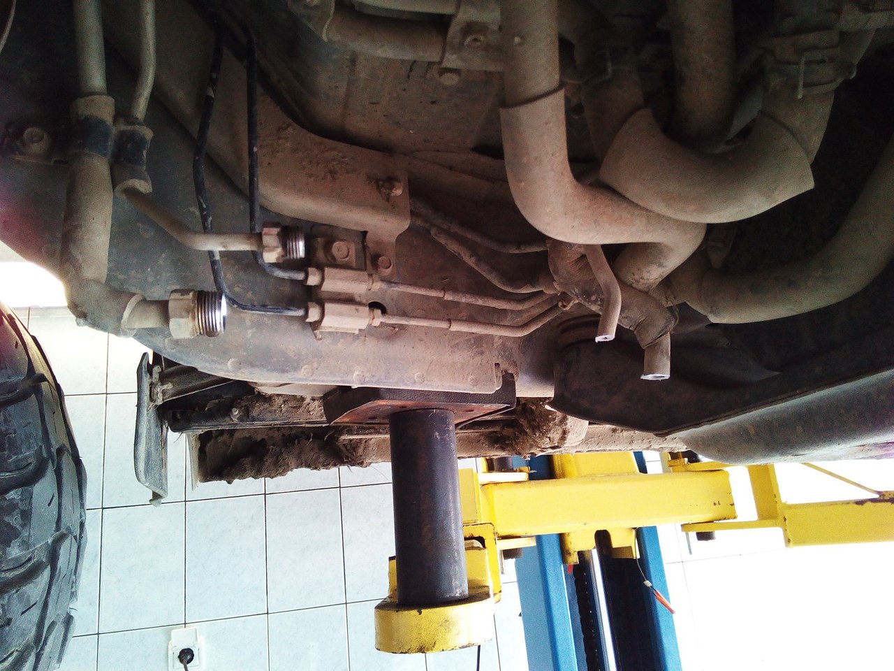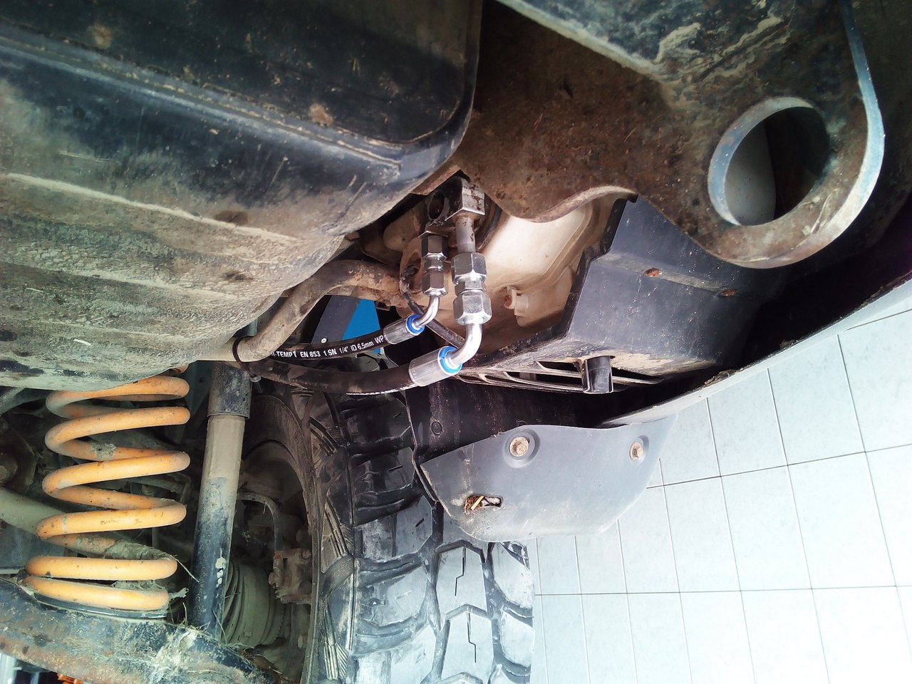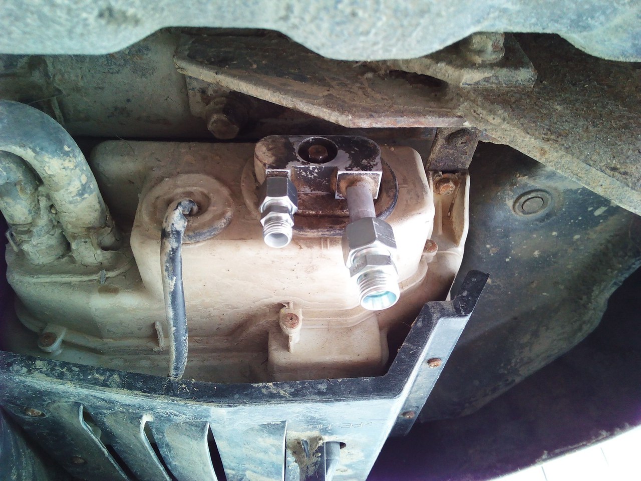 И еще- левый передний кронштейн крепления бака (такая толстая лента, возле переднего соединительного штуцера) лучше открутить - просовывая под ним, однозначно погнете трубку.