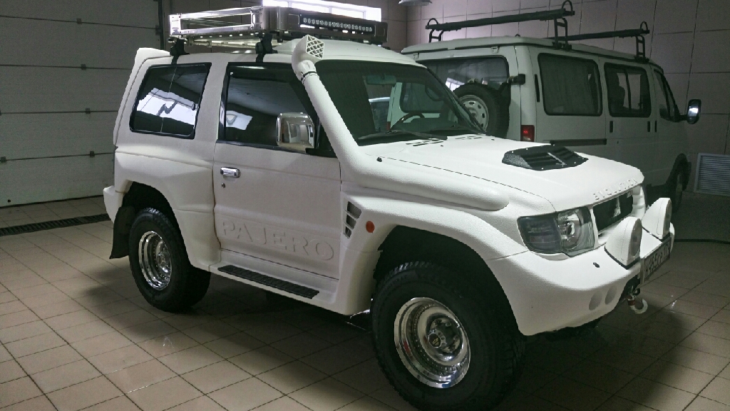 Pajeroll 1996,V25,3500с DOHC24,230л.с,SS,МКПП, R/D-lock,1,5"+гидролифт 2",шнорк,winch 10000,KM2 32",пружины тлк80,monomax,защиты Jaos,руль NARDI,багажник Аiba Works
