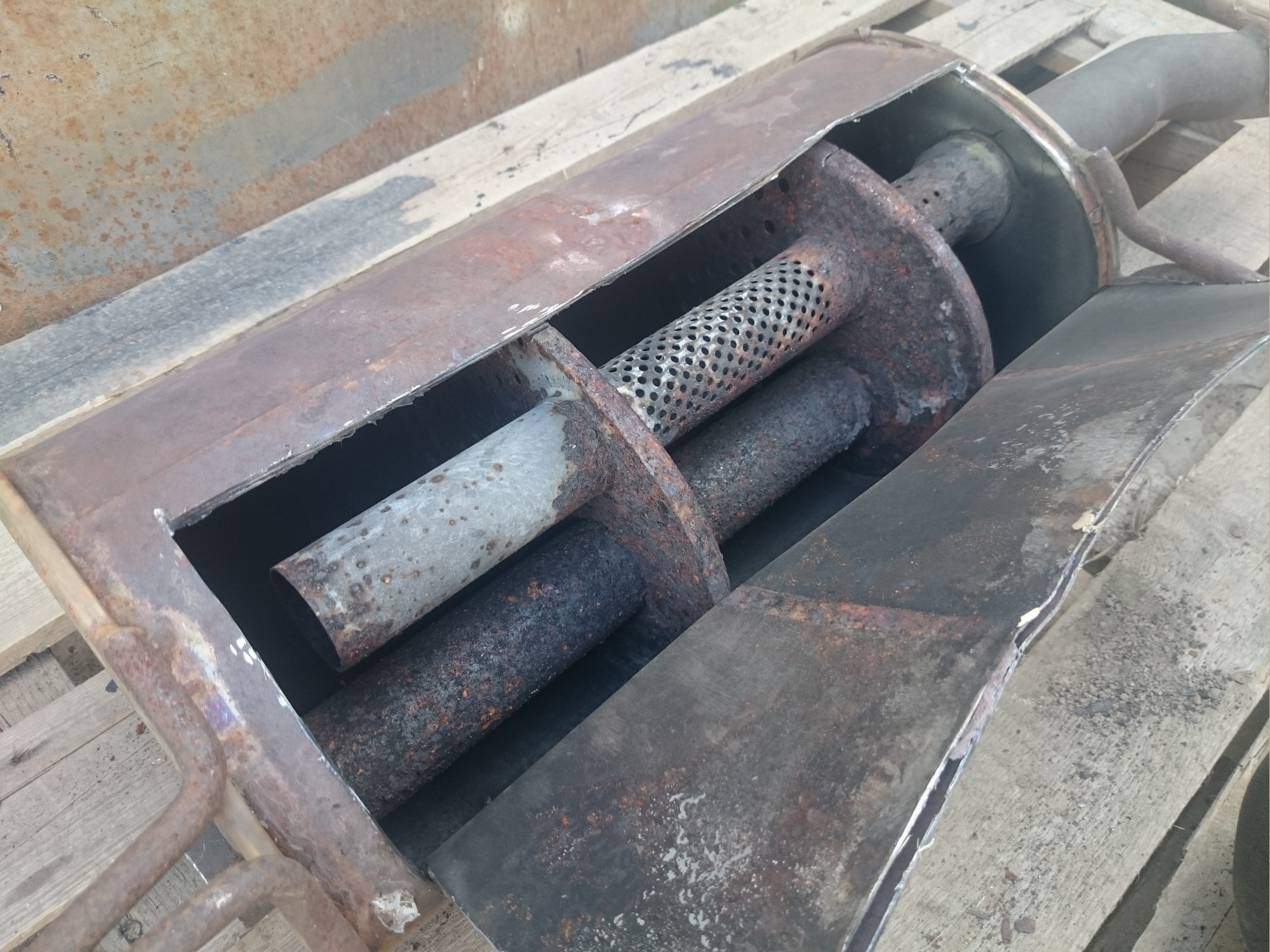 Резонатор имеет большой объем, и учитывая регулярно там скапливающийся конденсат - любит прогнивать, а перегородки внутри отваливаться от стенок.