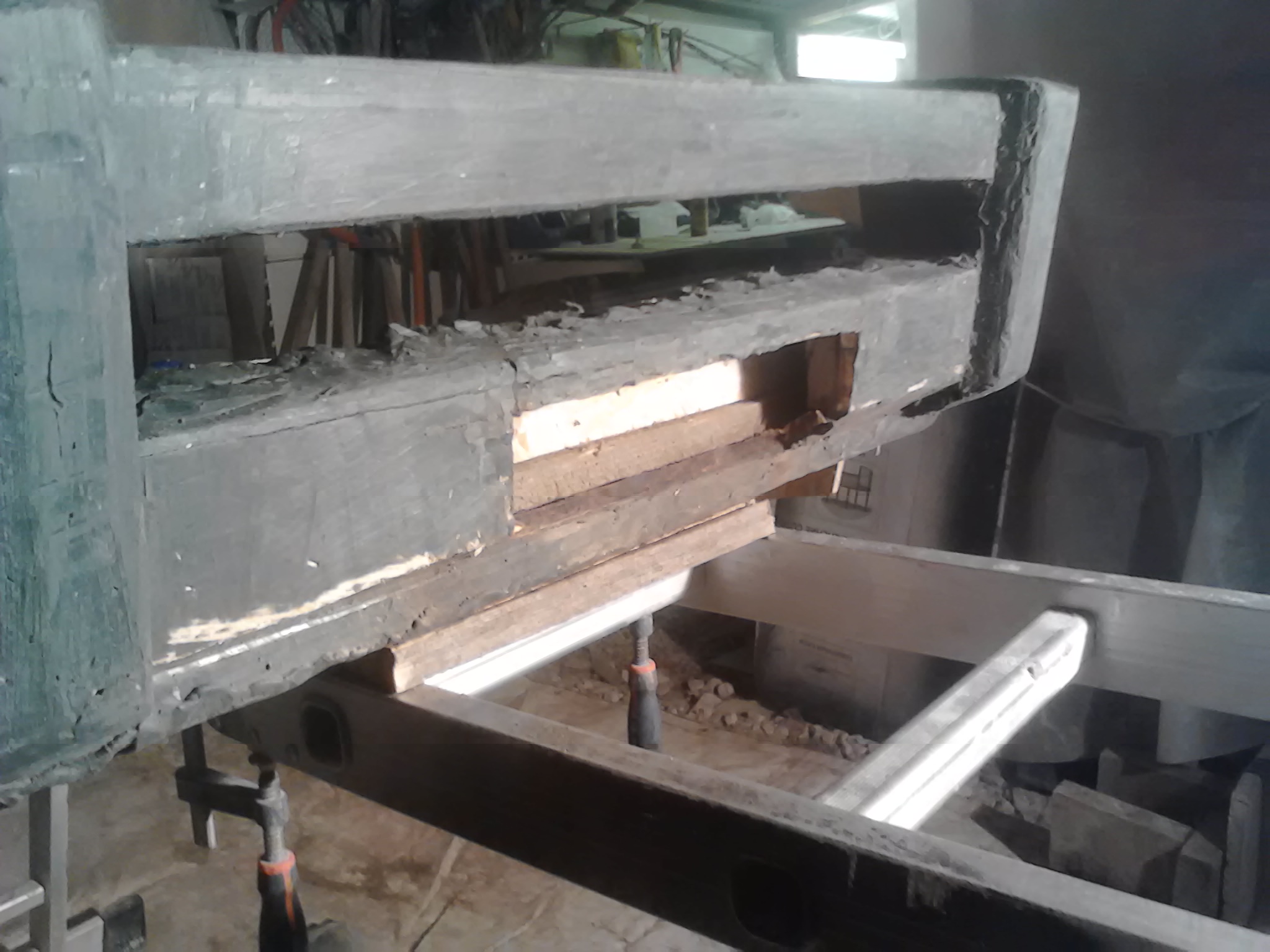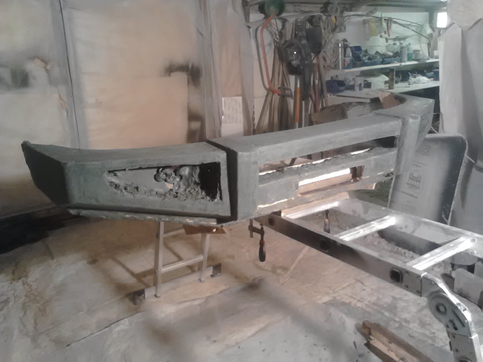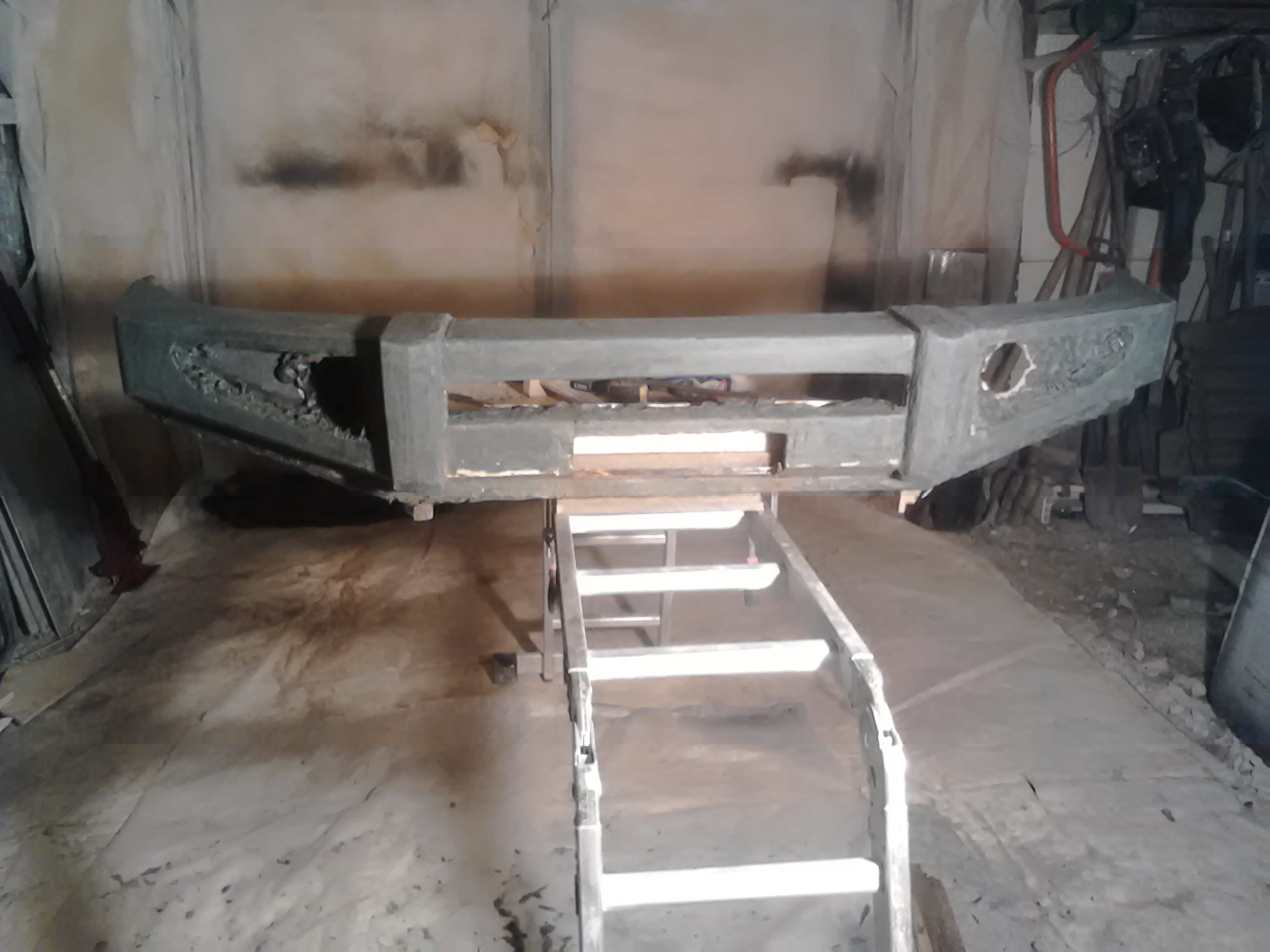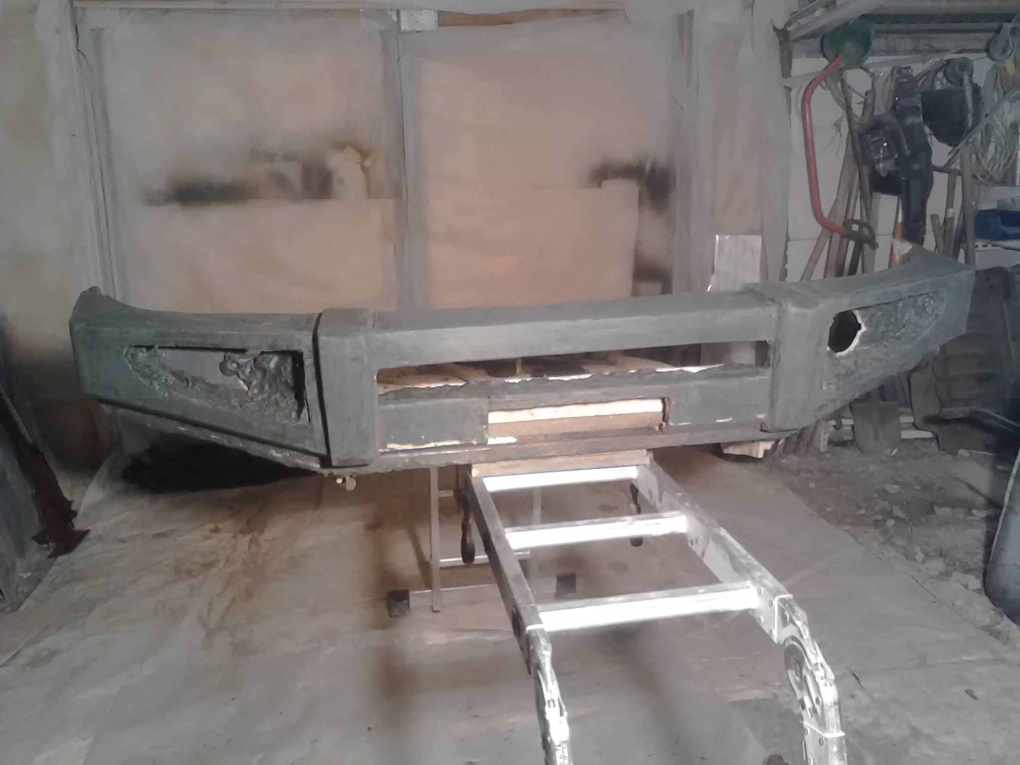 Здравствуйте! На данный момент идет работа по созданию "болвана". Крепление бампера будет обязательно к раме, через проставку из металлического швеллера. Металл будет так же влит в тело самого бампера. Вот несколько фото. Завтра будет работа с торцами бампера и изготовлению переходного кронштейна.