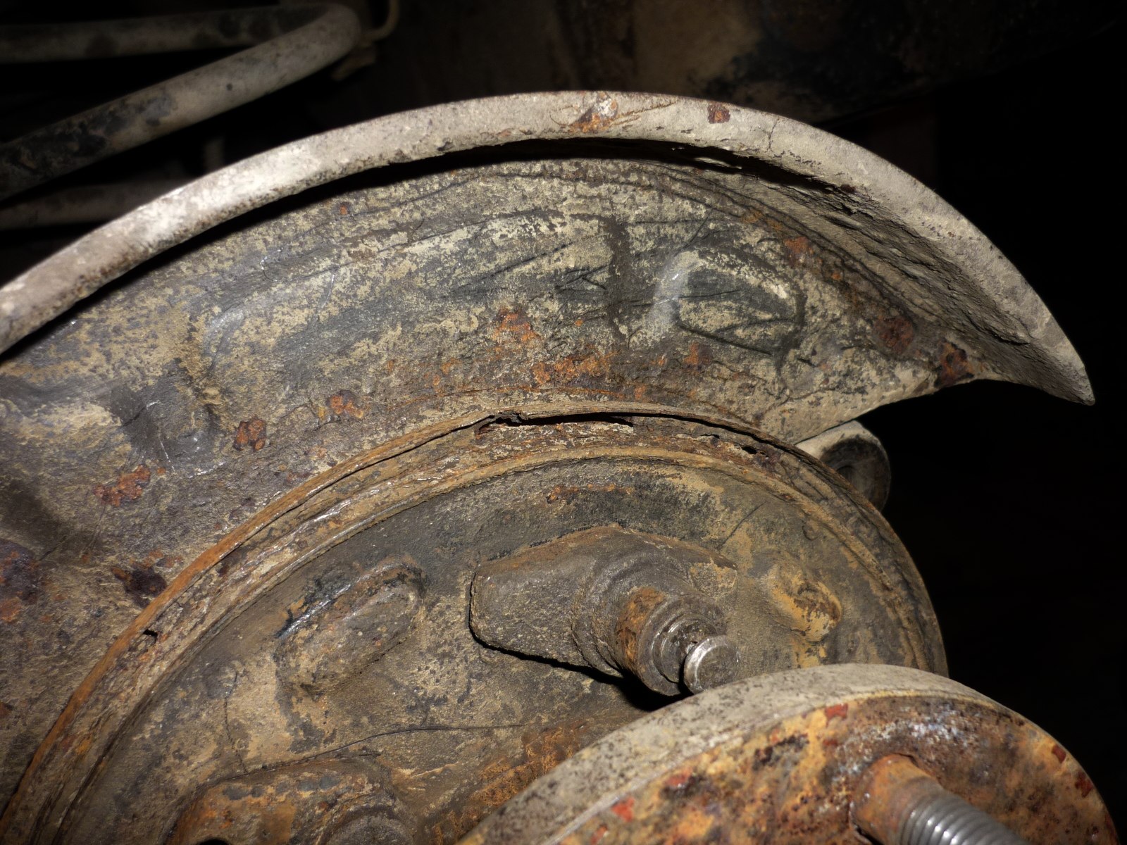 Возился вчера с задним тормозом. Дык на нём щиток с дырами уже (этот мост со старой машины поставил, поэтому и ржавый). Два года назад я его чуток почистил корщёткой и замовилил. Нынче новых дыр не появилось. Некоторые места пошкарябал отвёрткой, ну да есть под ними рыжина, но она не ползёт! И в общем-то состояние такое же как 2 года назад.