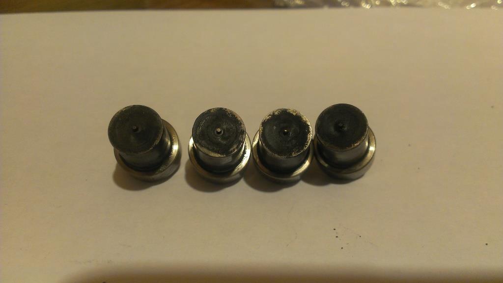 Не знаю сколько прошли эти распылители, но при внимательном осмотре, действительно, в центре наблюдается углубление (канава). Кстати, на них маркировка KP-DN10PDN130. Фото ниже.