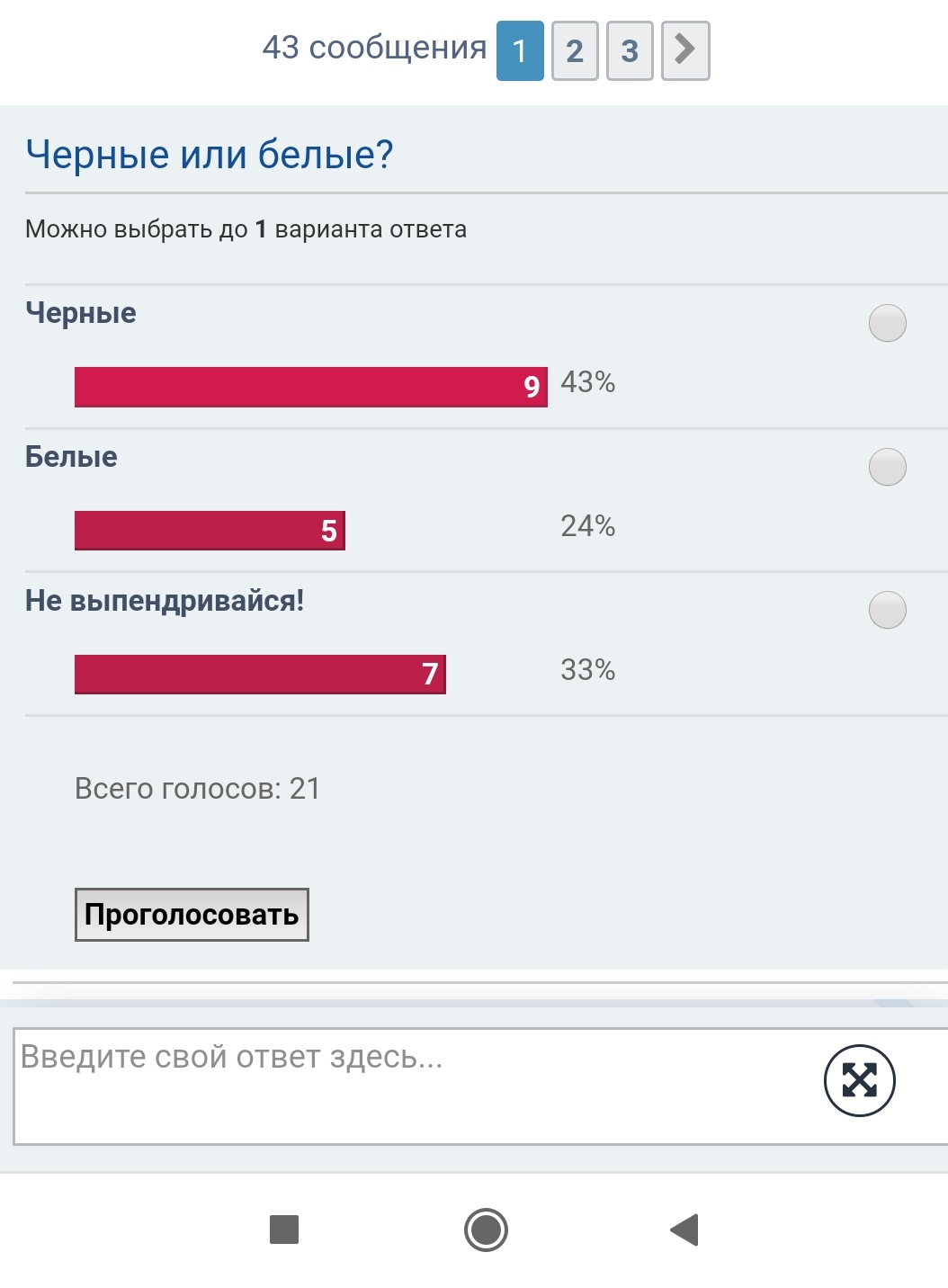 Опчем результаты голосования разделились, но черный цвет все же лидировал: