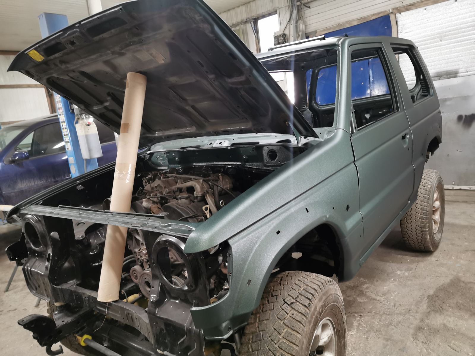 Работы идут, рама уехала на покраску, "морду" приварили, делают арки, перебирают задний мост.