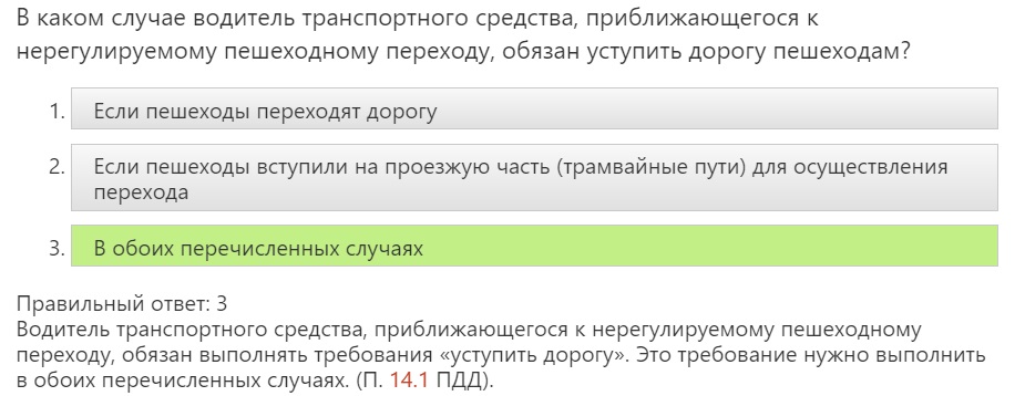 "Если перед нерегулируемым пешеходным переходом остановилось или снизило скорость транспортное средство, то водители других транспортных средств, движущихся в том же направлении, также ОБЯЗАНЫ ОСТАНОВИТЬСЯ или снизить скорость. Продолжать движение разрешено с учетом требований пункта 14.1 Правил. "