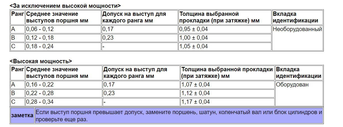 Так это я отсюда и взял. Только с переводчиком. В нижней таблице значения допуска не коррелируют со значением выступания поршней. В верхней нормально.
