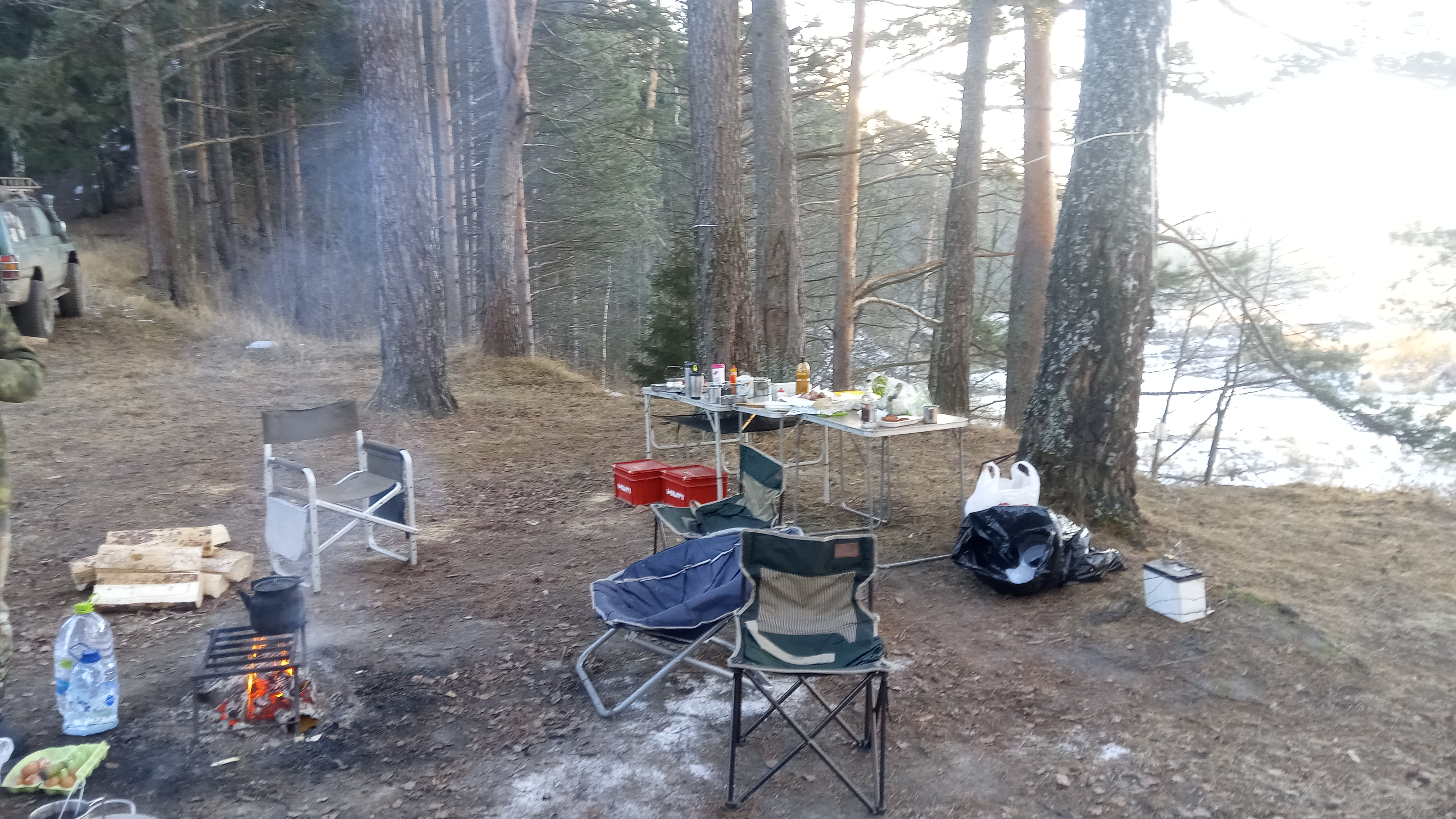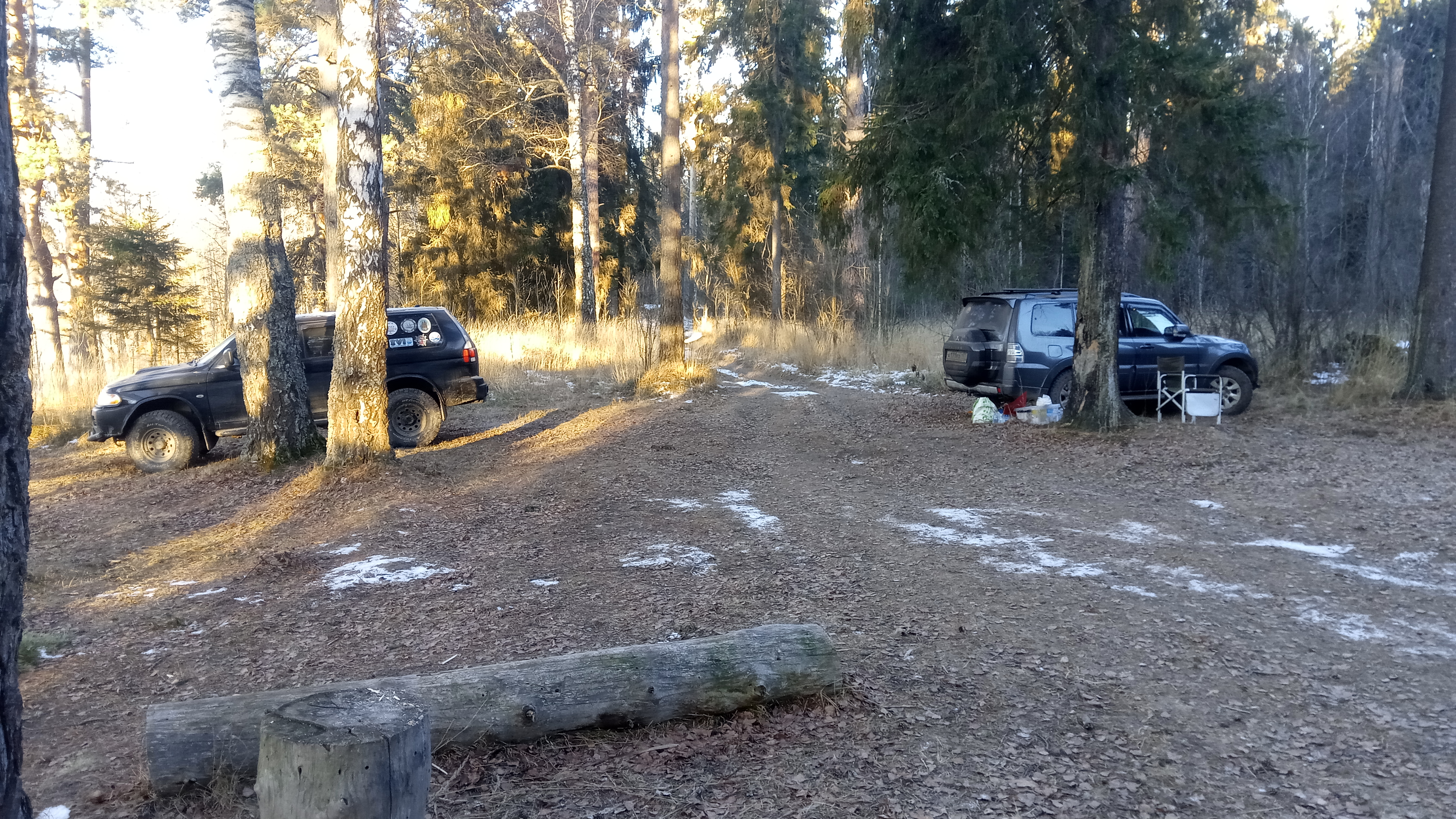 И насколько помню, от асфальта до точки 1-го лагеря тоже очень прилично по лесу ехать, так?