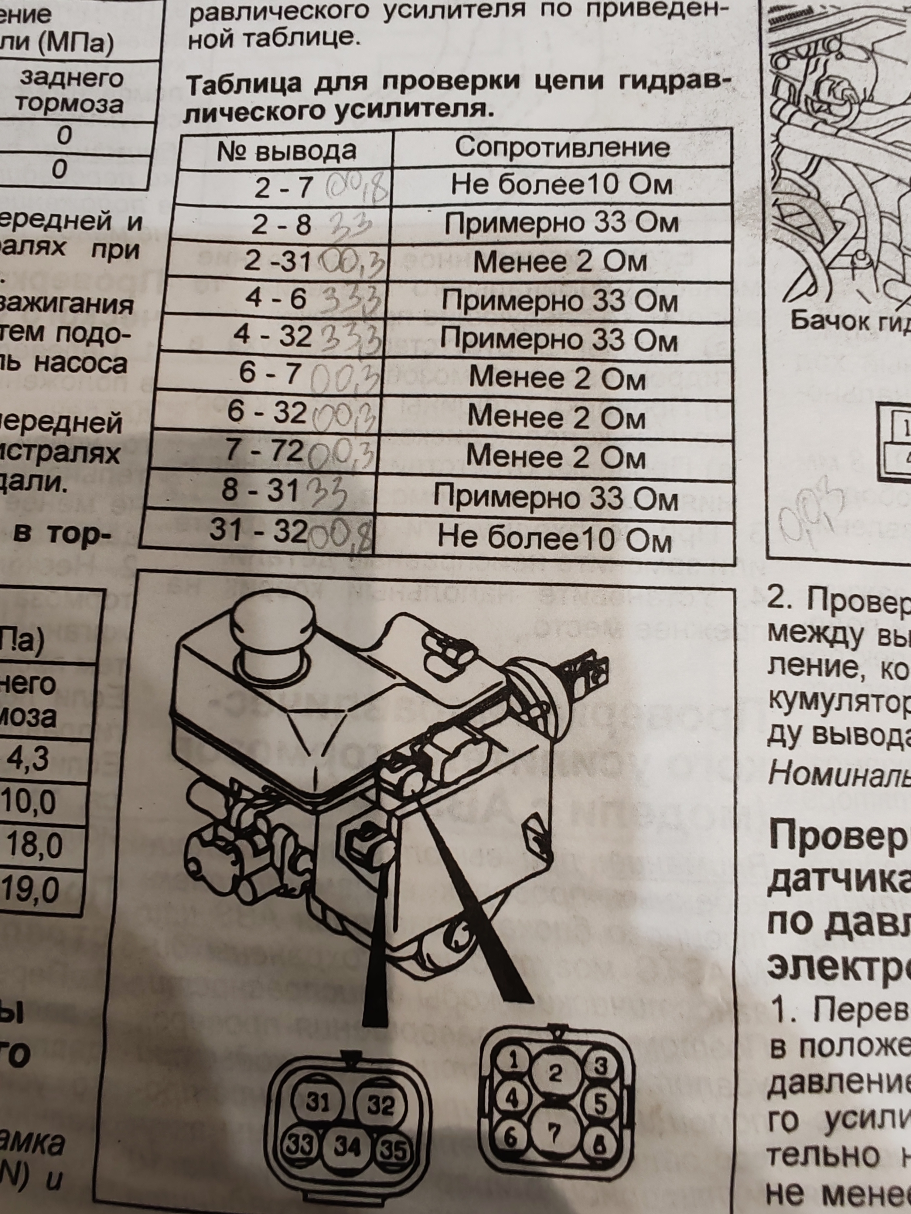 basilevs, здравствуйте. У меня по проверке электродвигателя насоса, такие цифры (фото). Перед замерам я поменял ремкомплект на насос и на прямую он работает на ура, даже с гидравлическим насосом! Но стоит поставить на место и подключить фишки - 0 !!! На снятом гидравлическом усилителем тормозов в сборе по прозвону правильных показателей 4/10 - как так-то