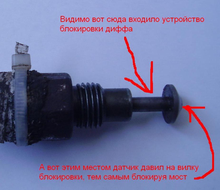 Сегодня снял концевик и при более детальном осмотре понял, что он работает на вытягивание а не на нажатие, как первый раз мне показалось, от сюда и вывод, что вытащив из моста датчик, назад его вероятно не встаить в нужное место, и получается что шток датчика толкает на исполнительный механизм блокировки, отсюда и вывод.
