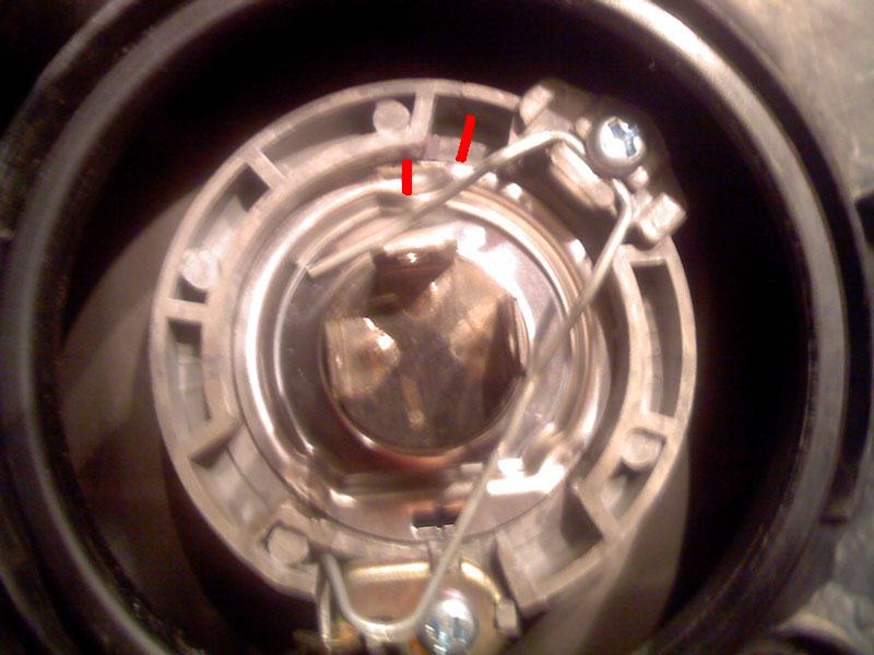 Лично меня уже достали с моей лебедкой, останавливают и давай втюхивать, что по новому тех.регламенту запрещены кенгурины, лебедки и прочие металлические девайсы, выступающие за пределы бампера..Я то естественно предлагаю им посетить славный город Бобруйск, но уже реально достали останавливать, а с ксеноном достанут и подавно..Так что пришлось скрутить фары, и поставить обратно галогеновые лампы..Ну а поскольку давно хотел откорректировать пучок света, то воспользовавшись поводом приступил к процессу: Берем и отрезаем все 3 усика на лампочке..Пессимистов, голосящих о том, что ламопчка держаться не будет - уверяю, что когда защелка ее будет держать, вы даже ее провернуть не сможете..Так что смело отламываем усики, я делал обычными бокорезами..Заусеницы подрабатываем напильником, хотя с ними фиксация в фаре жестче, но уже лампочку не по вращаешь.. Далее поворачиваем лампочку против часовой стрелки, так, чтобы верхний усик стал почти на 12 часов: Ну и сам результат..На примере правой фары, картинка ДО операции, на которой отчетливо видна левая галочка и ПОСЛЕ: Улучшения на лицо, не слепим встречных водителей, и освещаем свою обочину..